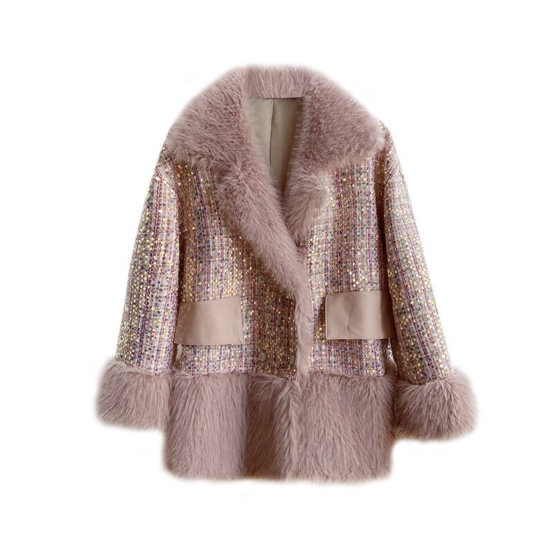 2021 冬のコートの女性スパンコールウールの毛皮のコートの毛皮のコート緩いバージョンパーカー brillantes куртка зимняя женская унты ウィンター 冬物 bel78588068077 | aliel