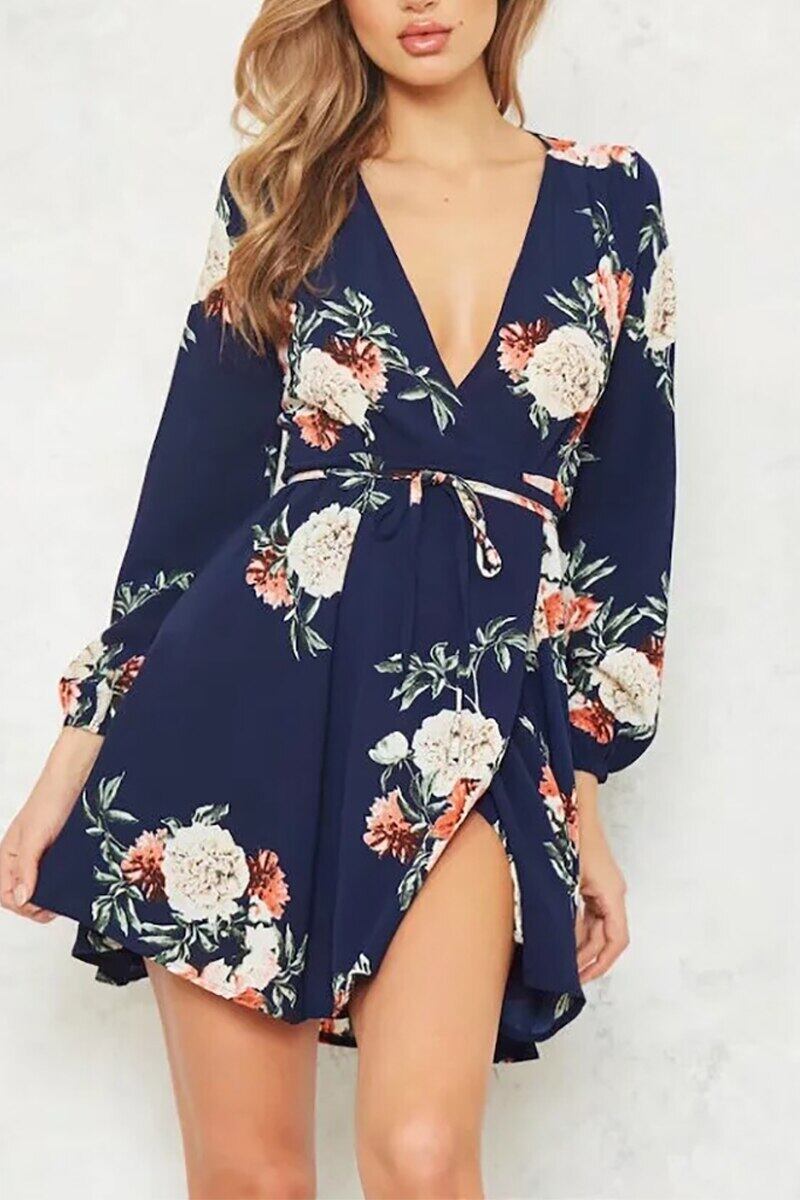 Bella Philosophy 2018 春の女性のミニドレスプリント長袖ルーズドレス V ネック花サッシュドレス ロング スプリング 春物 花柄 Vネック bel99678524648 | aliel