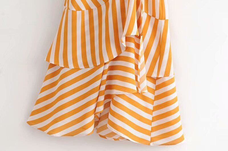 ベラ哲学レトロな v ネック フリル ストライプ ドレス女性ボタン マーメイド ロング ドレス夏半袖カジュアル ドレス ローブ ファム ショート ハーフスリーブ サマー 夏物 Vネック フェミニン bel71544173209 | aliel