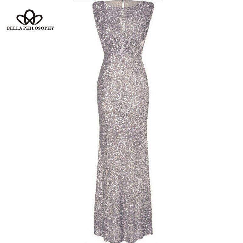 Bella Philosophy 2018 秋のソリッドノースリーブスパンコールイブニングパーティードレスロング足首までの長さの大きいサイズのドレスセクシーな背中の開いたドレス 大きめサイズ オータム 秋物 ソリッドカラー bel39087613377