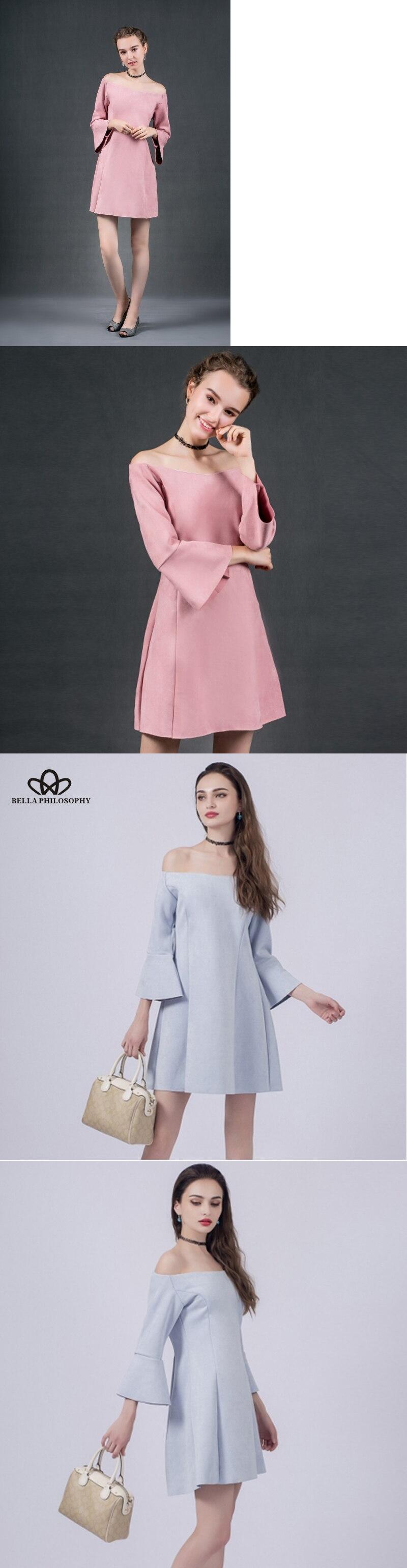 ベラ哲学 2019 冬のオフショルダーの女性のドレスフリルスリーブの女性スケータードレススラッシュネックピンクの固体の女性の vestidos ラッフル ウィンター 冬物 ソリッドカラー bel42420387304 | aliel