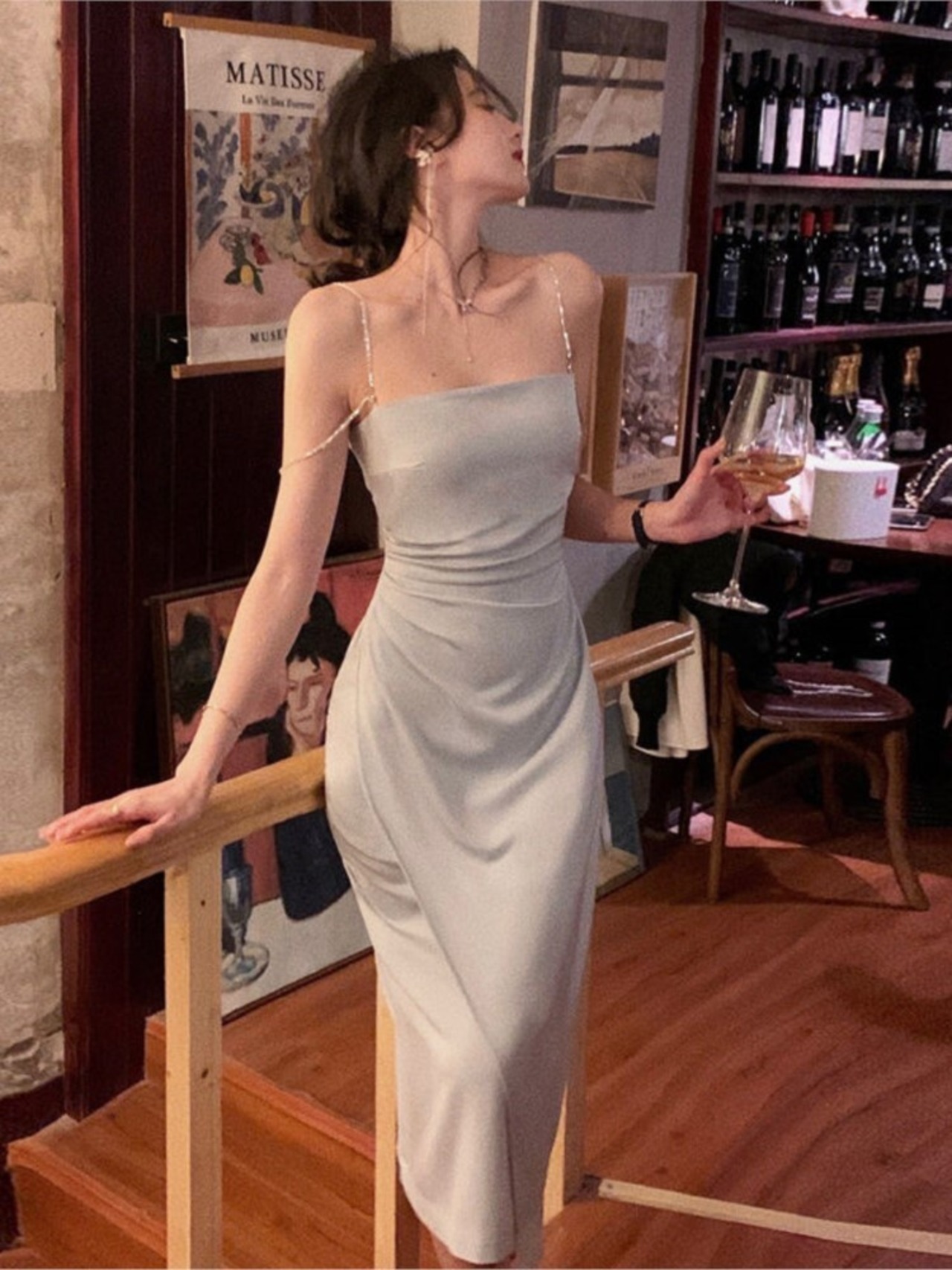 ファッション因果エレガントなストラップドレス甘いドレスプリーツサスペンダードレス女性の夏 2022 フレンチロングドレスの女性 大人ガーリー スウィート キュート カジュアル サマー 夏物 bel32018838695 | aliel