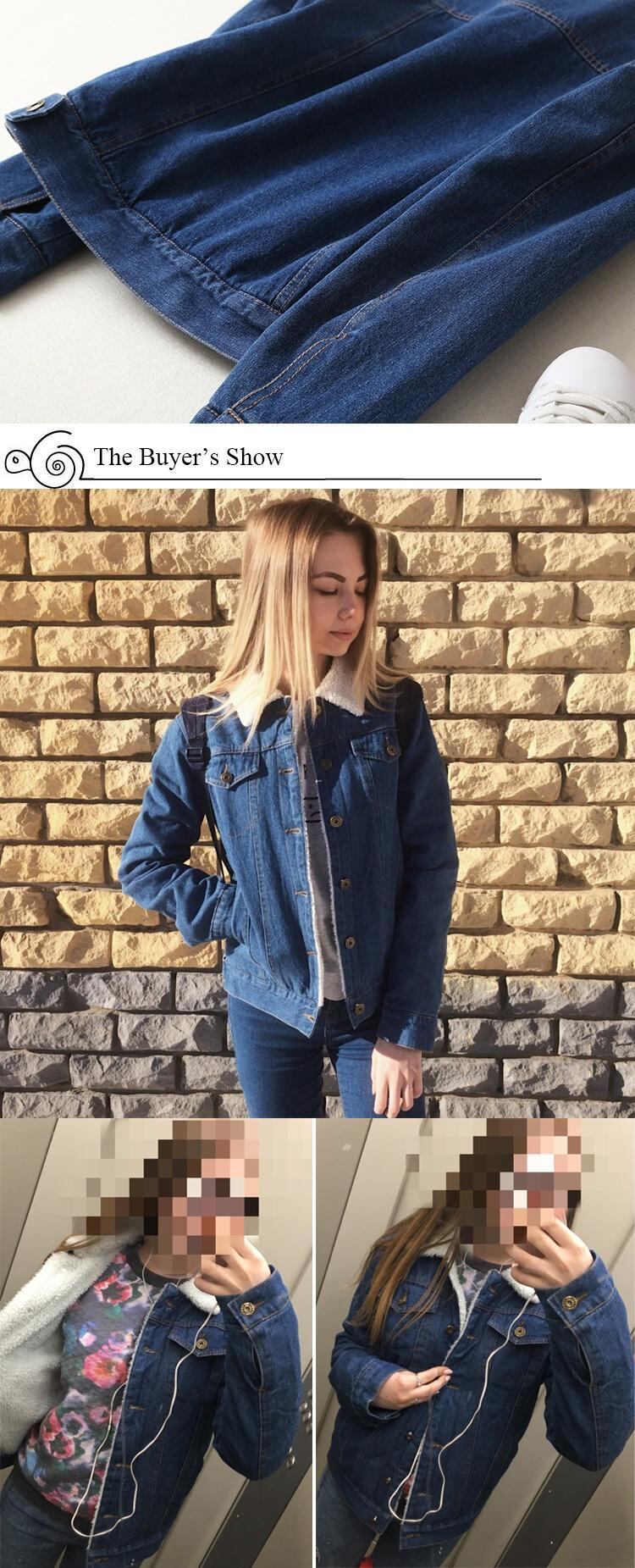 春秋冬 2019 女性ラムズウールジーンズコート 4 ポケット長袖暖かいジーンズコート生き抜くワイドデニムジャケット ロング スプリング 春物 オータム 秋物 ウィンター 冬物 bel29760401453 | aliel