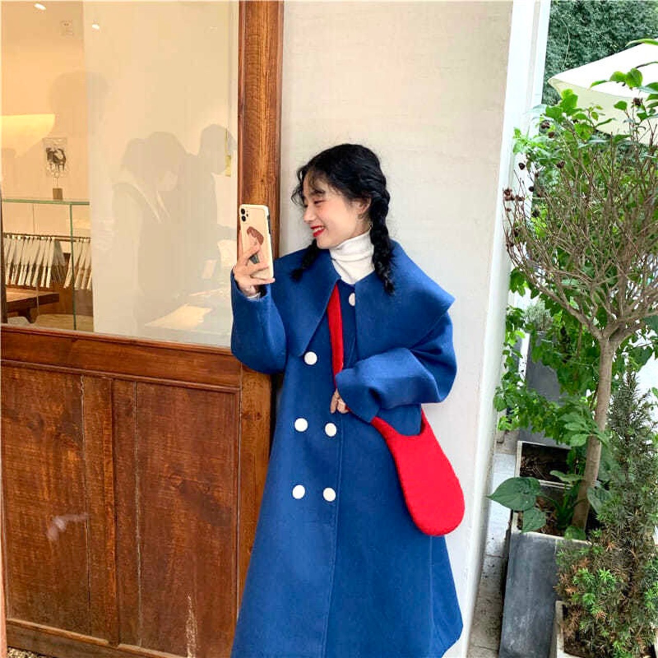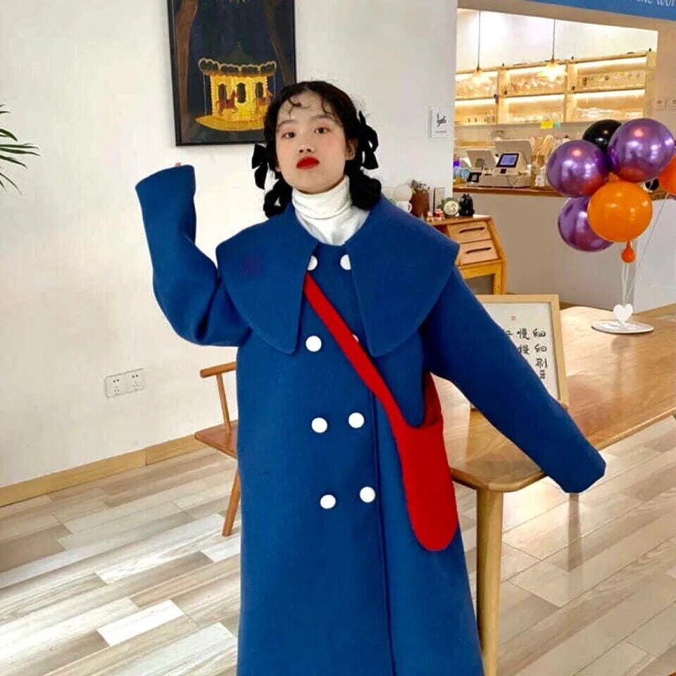 2021 冬のビッグカラースウィートブルーウォームウールコートダブルブレスト厚い Outerwears レディコート 大人ガーリー キュート カジュアル ウィンター 冬物 bel83572643358 | aliel
