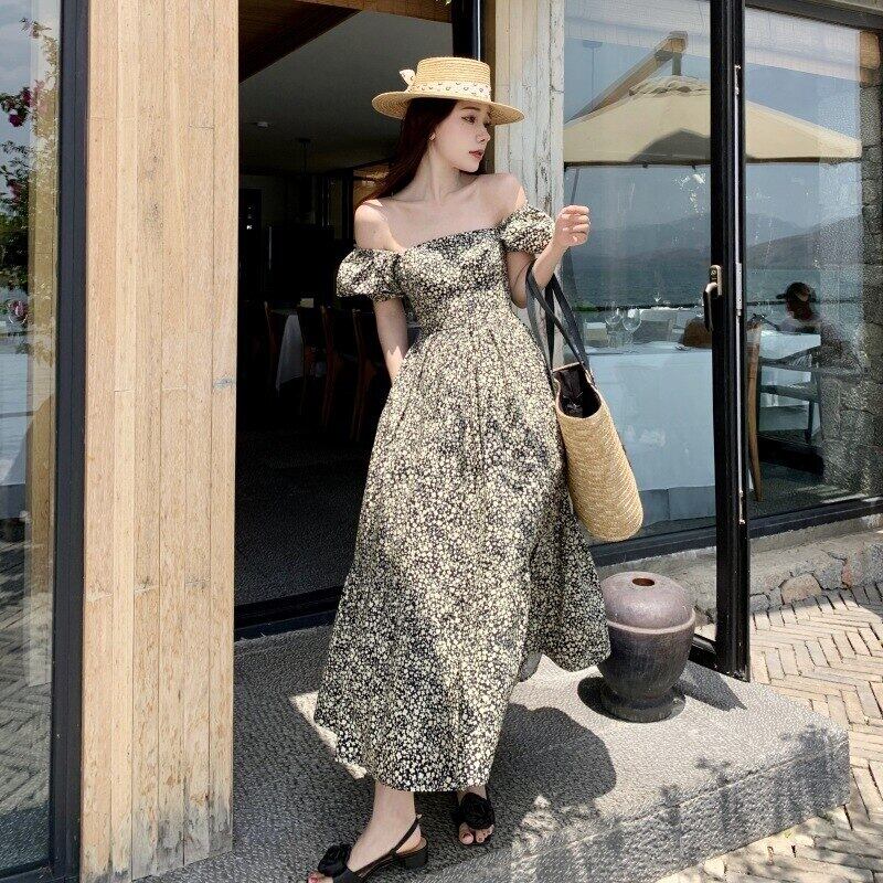 半袖ドレス女性プリントパーティービーチ 2022 夏マキシビーチドレススクエアカラーマキシ Vestido ショート ハーフスリーブ サマー 夏物 スクウェア bel8357010063 | aliel