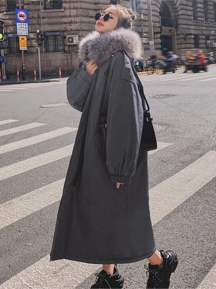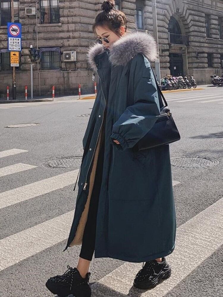 ロングパーカーパッド入りジャケット女性のロング膝上プラスフリースコート 2022 爆発暖かいパッド入りコート冬肥厚 ウィンター 冬物 bel67239965202