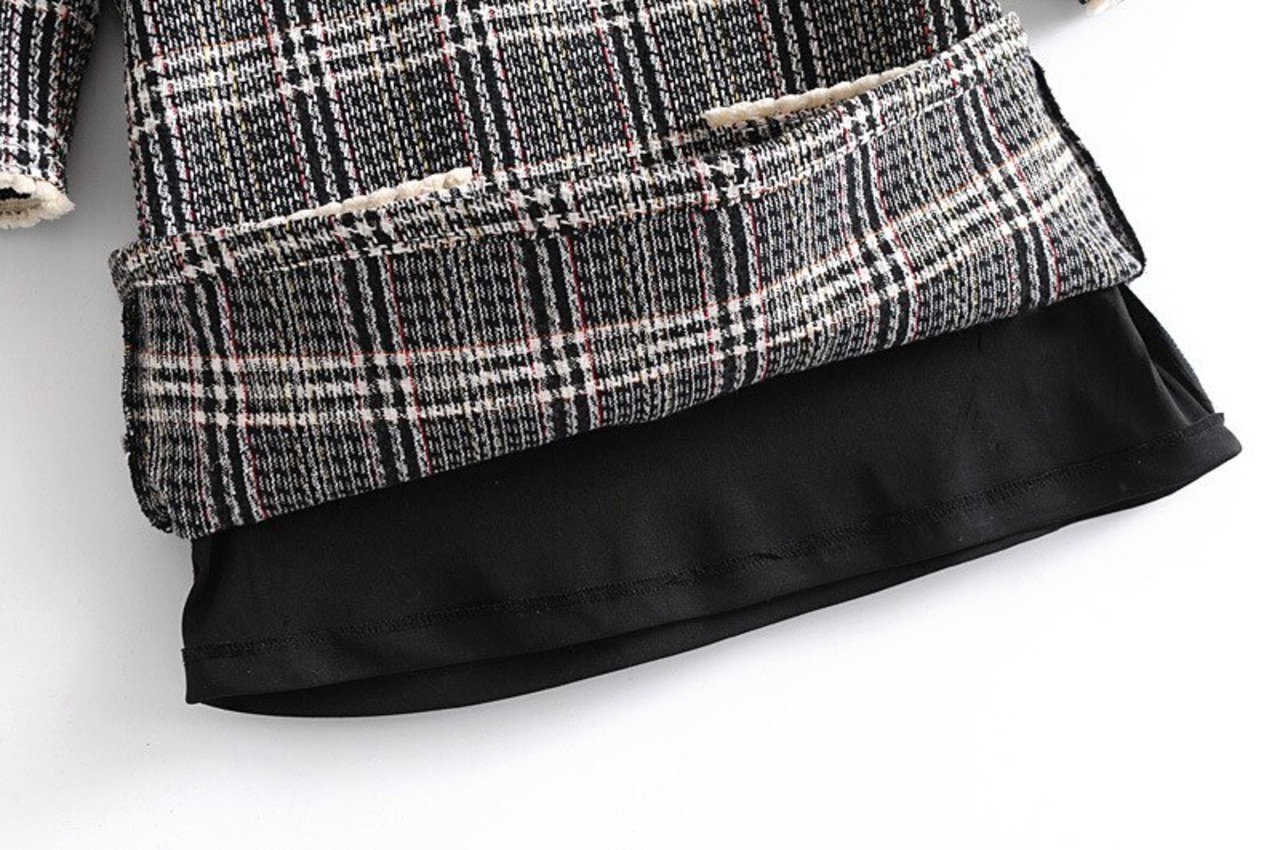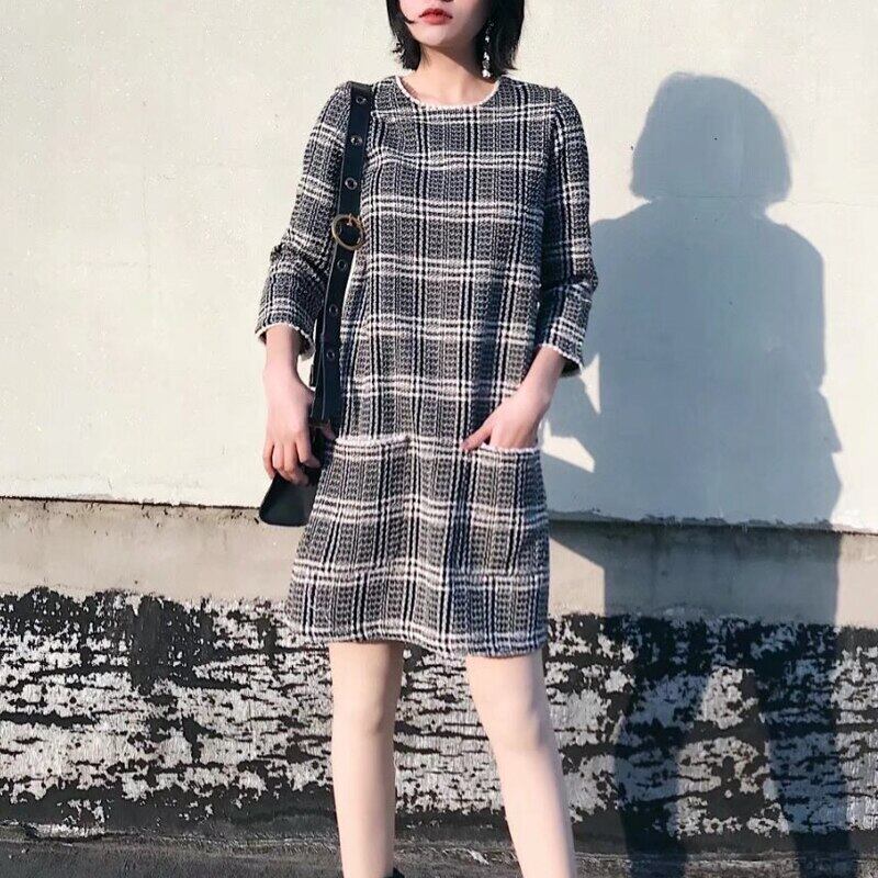 ベラ哲学 2018 春の新作女性チェック柄ミニドレスヴィンテージ緩い女性のドレス 3 四半期 O ネックファッションドレスの女性 スプリング 春物 Oネック ビンテージ bel62577763875 | aliel
