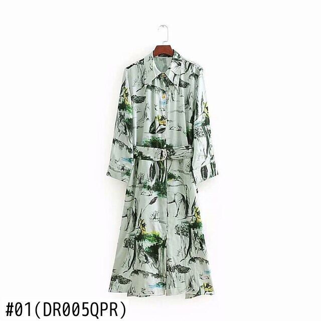 Bella Philosophy 2018 秋 ウエスタン スタイル ドレス ストリート プリント フル ミッドカーフ ポリエステル Aライン サッシュ ナチュラル ターンダウン カラー オータム 秋物 天然 bel87342943778