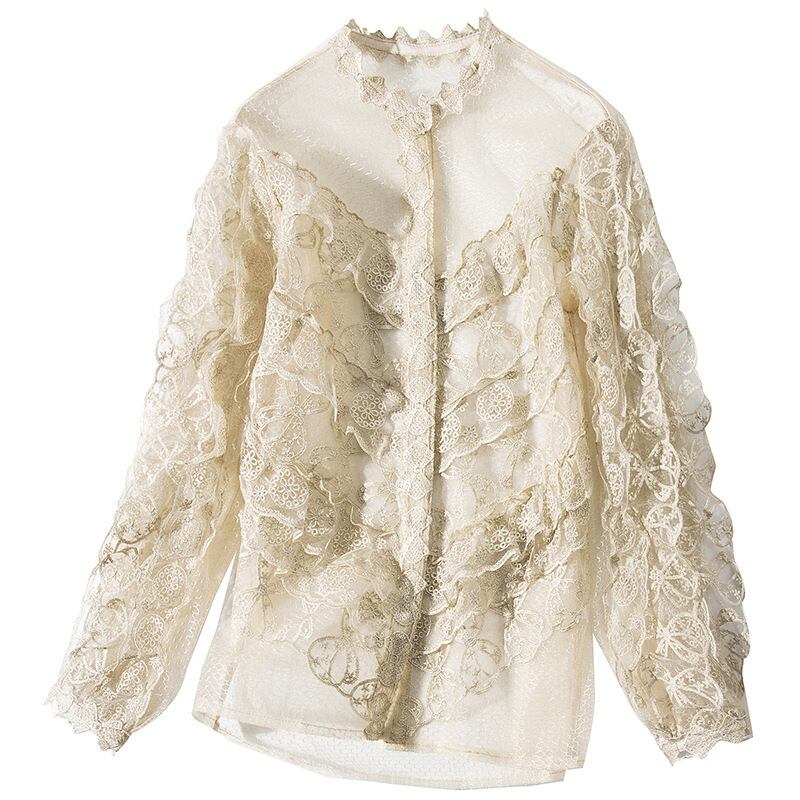 Bella Philosophy ソリッド レディース ブラウス O ネック パフ スリーブ メッシュ パースペクティブ シャツ 2019 春潮 スプリング 春物 Oネック ソリッドカラー bel51775793833 | aliel