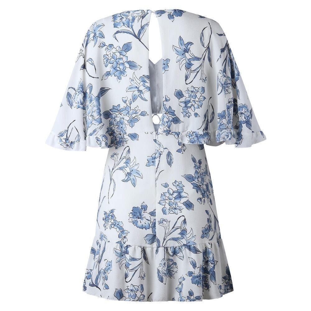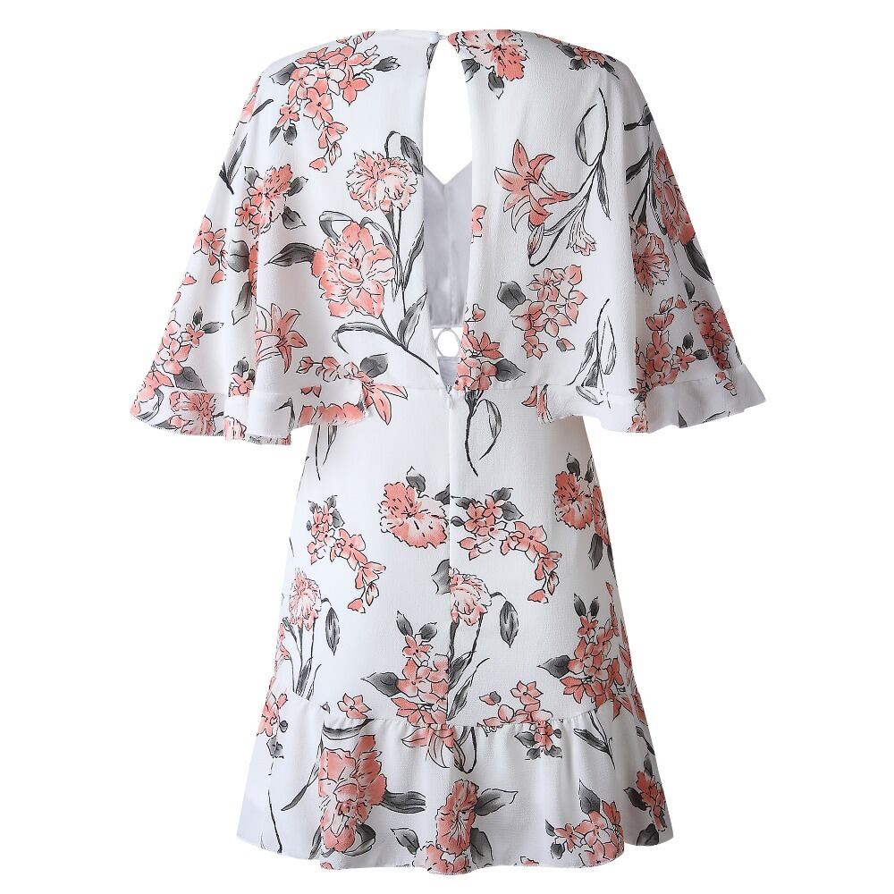 ベラ哲学夏の女性花パイントボヘミアンフリルドレスセクシーな V ネック中空アウトビーチドレスホリデージッパーバック Vestido サマー 夏物 花柄 Vネック bel75674870295 | aliel