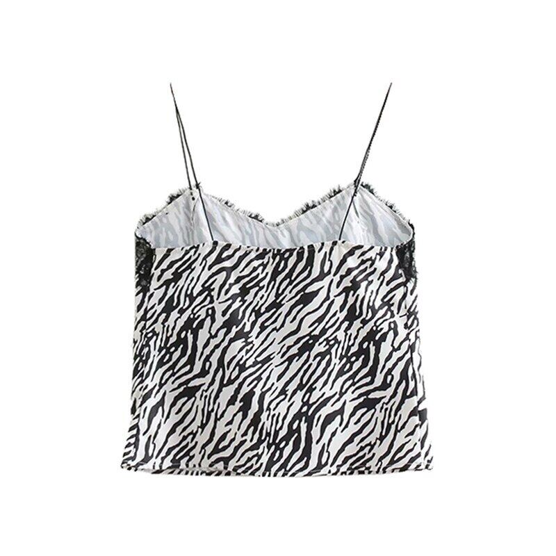 Bella Philosophy セクシー レース パッチワーク ゼブラ プリント トップス レディース キャミソール ノースリーブ アニマル柄 ベスト シャツ bel60689636186 | aliel