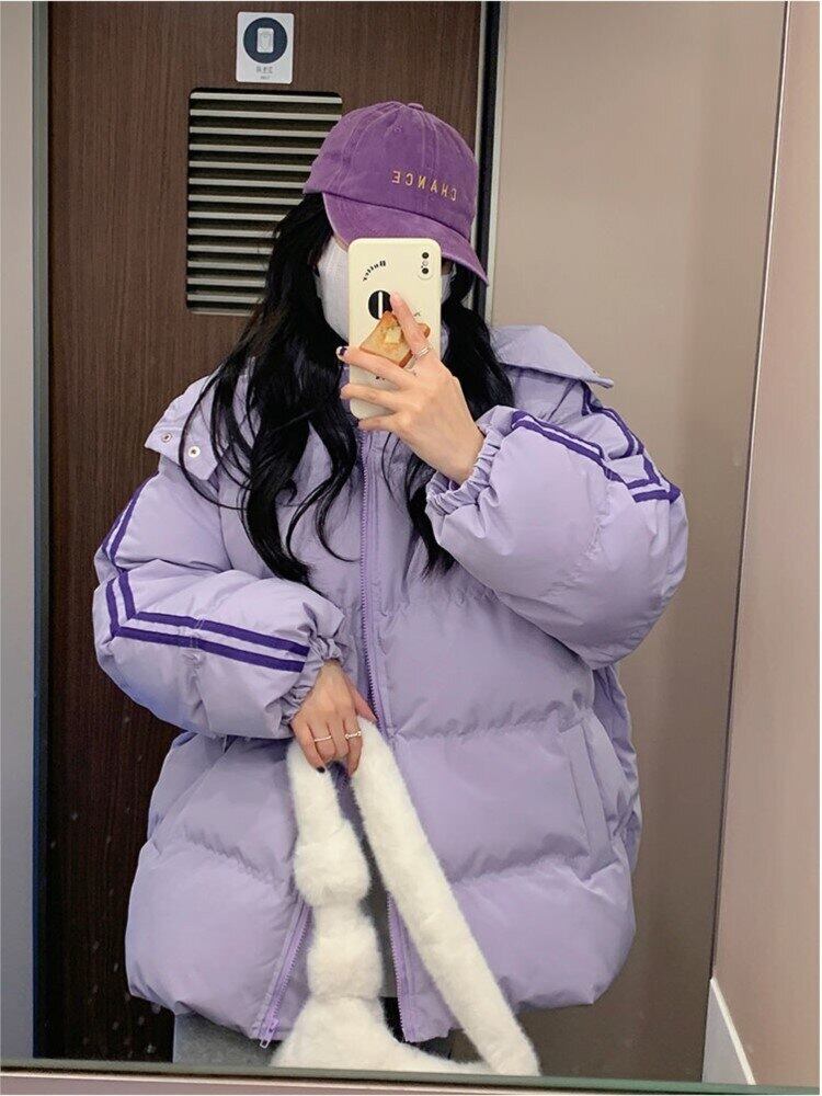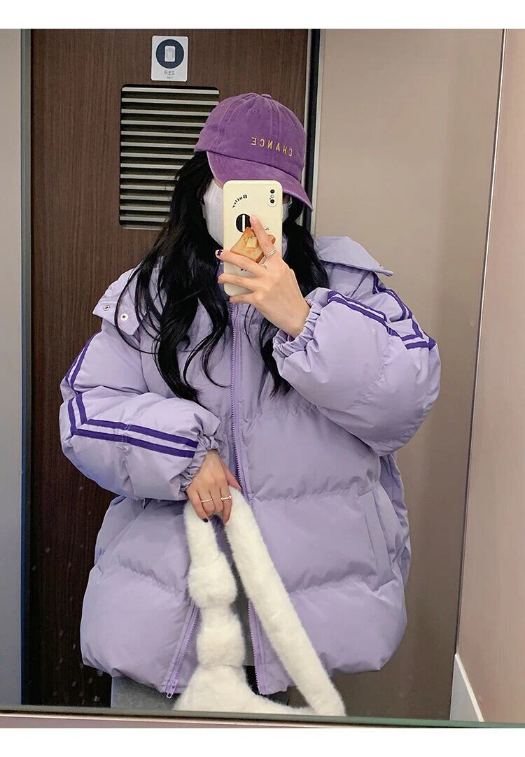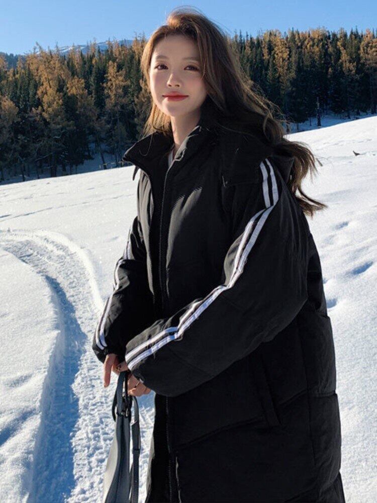 レディース オーバーサイズ オーバーニーロング ウォームコート 冬用 中綿入り ジャケット パーカー 厚手 ストライプ アウター コットン ウィンター 冬物 bel60239885505 | aliel