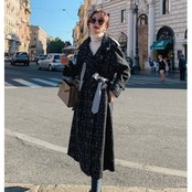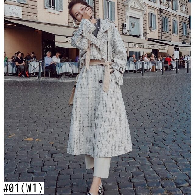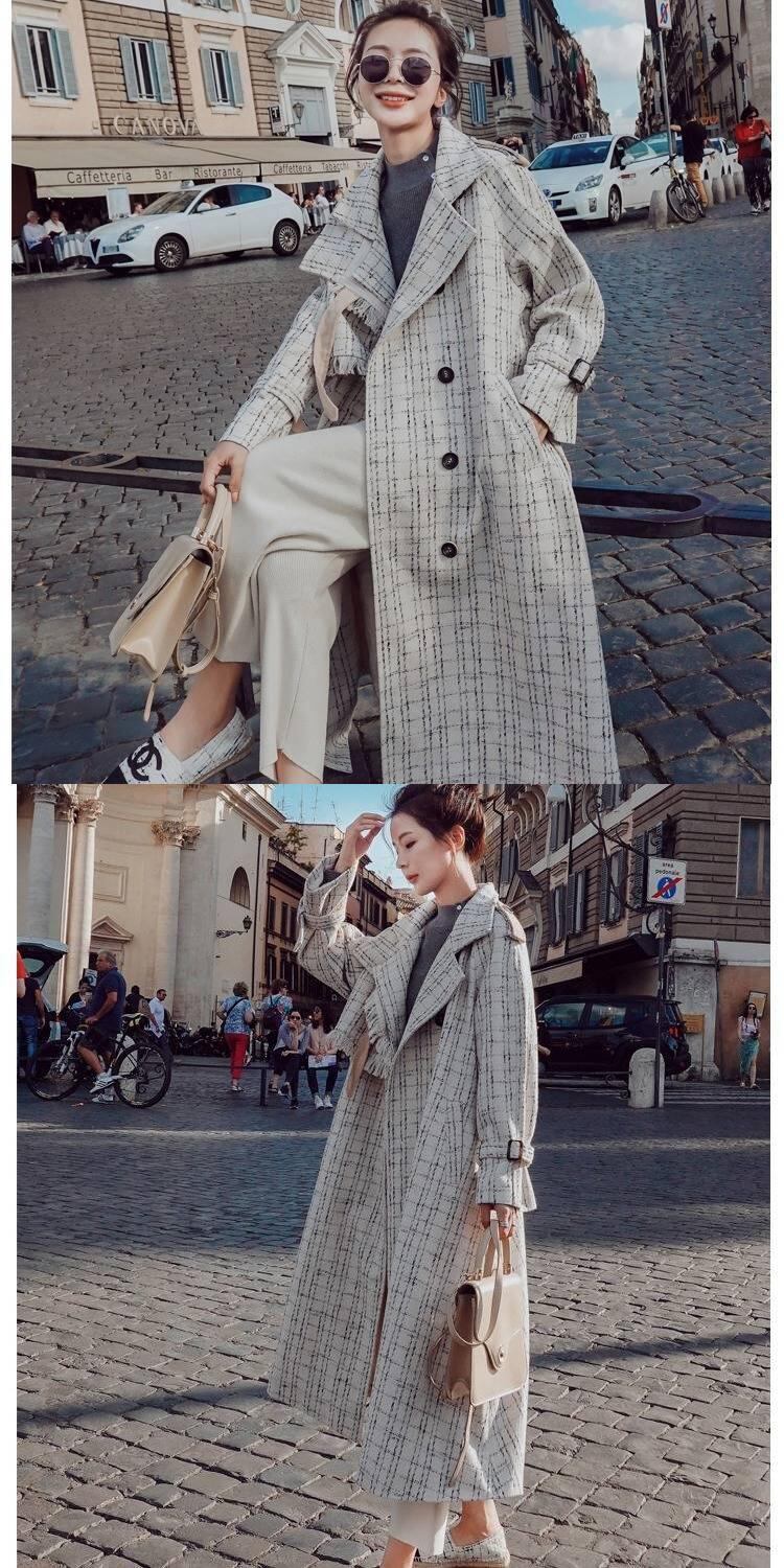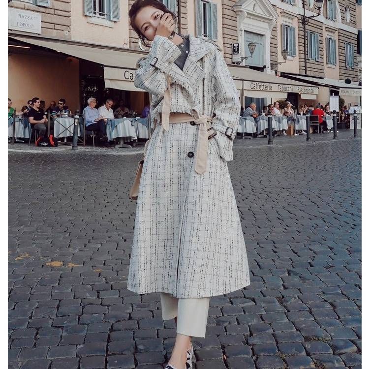 ベラ哲学女性の冬の固体暖かいウールコート厚いチェック柄グリーンサッシュコート女性ターンダウン襟コート ウィンター 冬物 ソリッドカラー bel8868467173