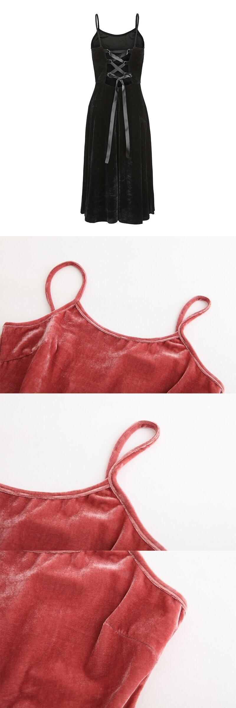 ベラ哲学 2018 女性の冬のベルベットのドレススパゲッティストラップセクシーなドレス緩いソリッドレースアップバックオープン帝国の女性のドレス ウィンター 冬物 ソリッドカラー bel75098077105 | aliel