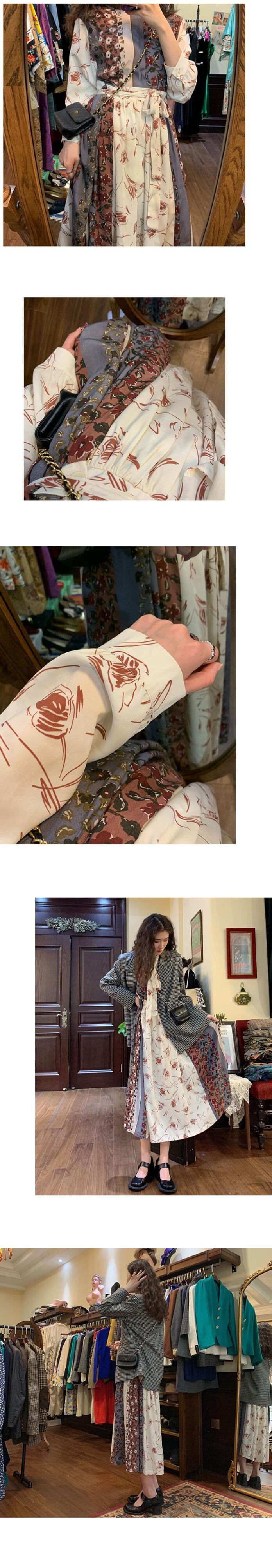 女性春秋の O ネック花柄プリント ドレス長袖 A ライン ドレス レースアップ Vestidos ロング スプリング 春物 オータム 秋物 Oネック Aライン bel66967885430 | aliel