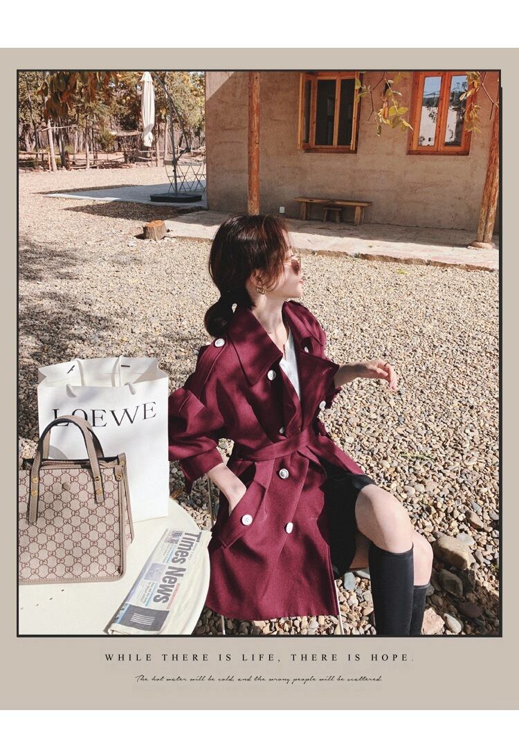 秋特大ウエストタイトショートスタイルトレンチターンダウンカラーベルトダブルブレストハイウエストコート女性生き抜く ハイウェスト オータム 秋物 ハーネス bel17857256021