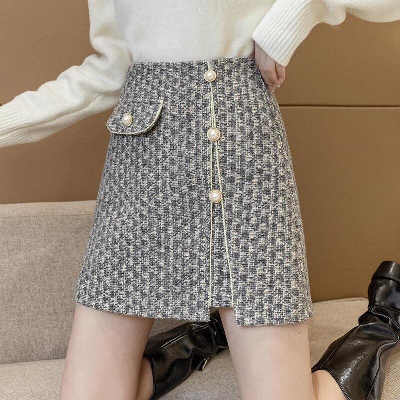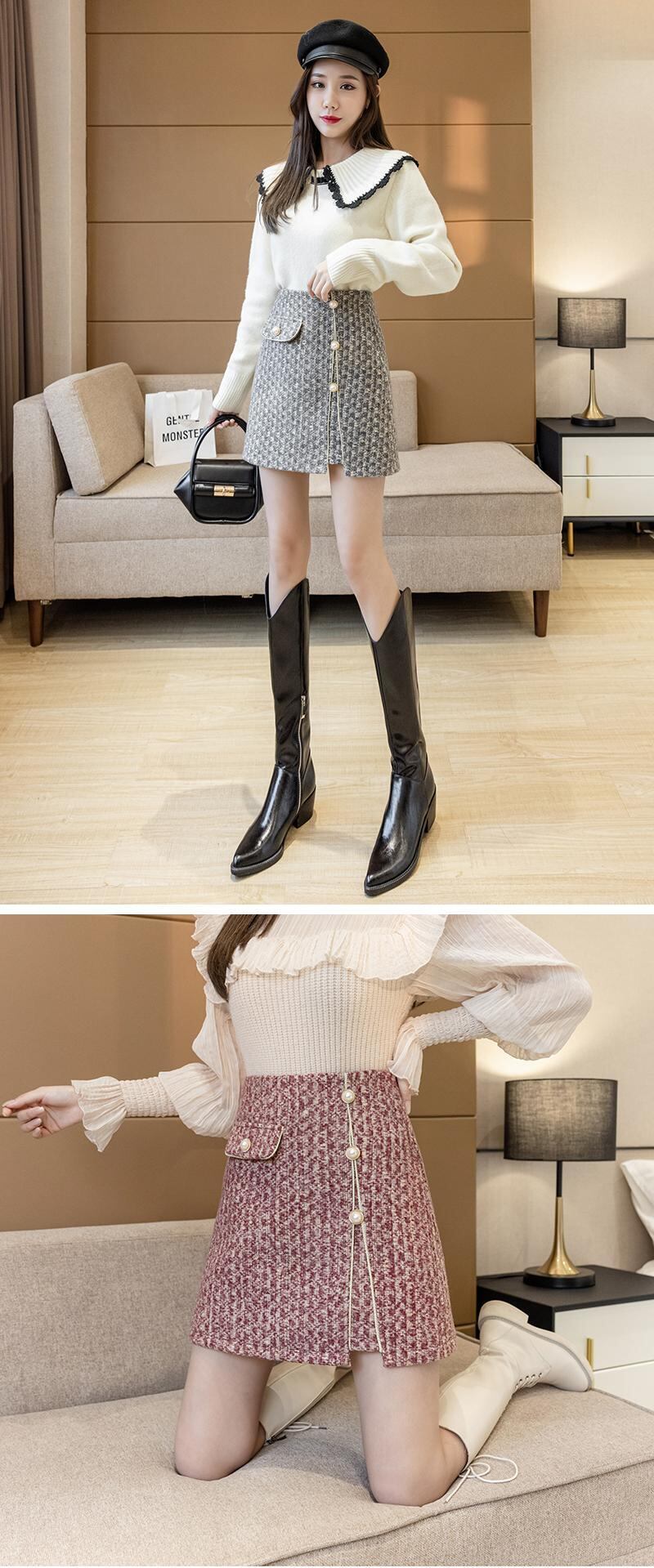 ガーリー a ライン ツイード スカート女性バック ジッパー パール ウエスト スカート スタイル オフィス レディ ミニ スカート ボトムス Aライン 会社 学校 通勤や通学にも bel70568021825 | aliel