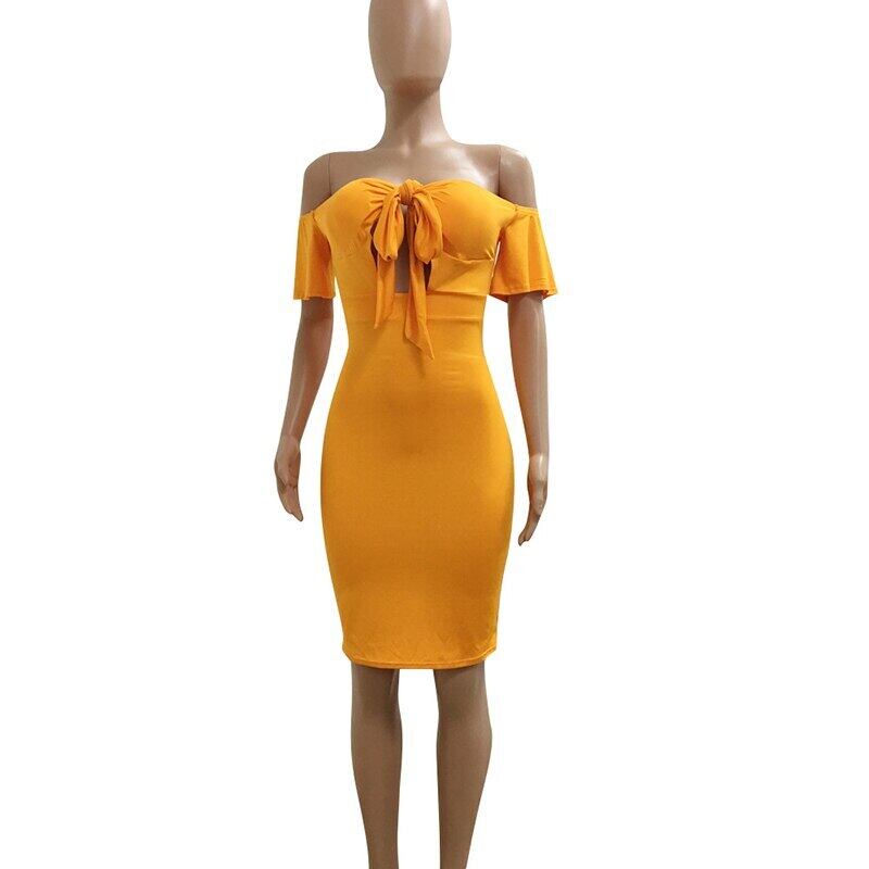 ベラ哲学 2019 夏セクシーなクラブの女性ドレス弓スラッシュネック女性 vestidos 膝丈 OL オフィスレディースドレス リボン サマー 夏物 会社 学校 通勤や通学にも bel62745338184 | aliel