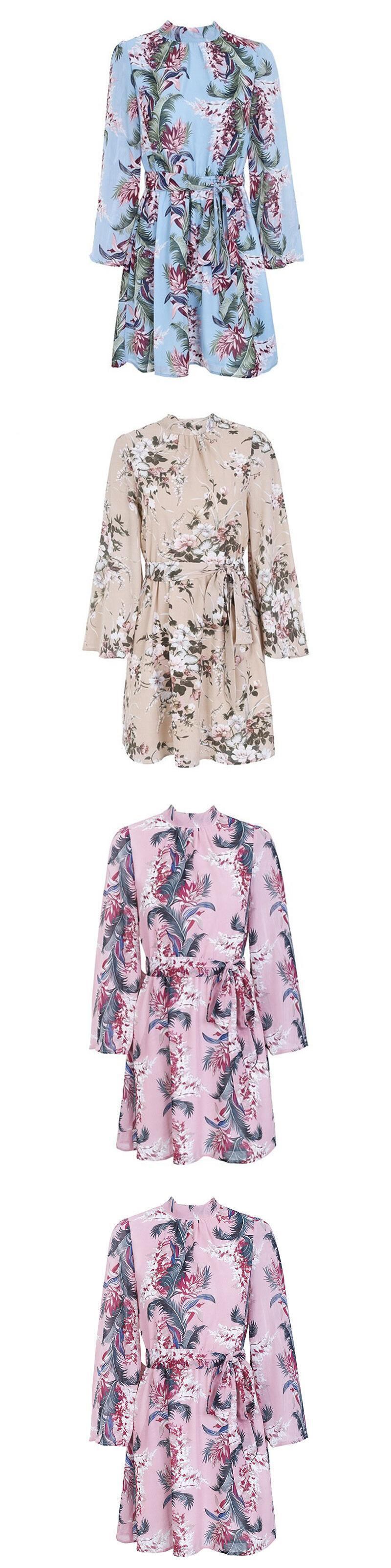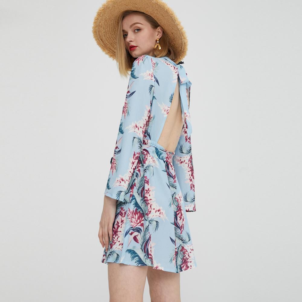 Bella Philosophy Aライン 花柄 Oネック レディース サマードレス シフォン バックレス ホリデードレス ビーチドレス 夏物 bel80032430322