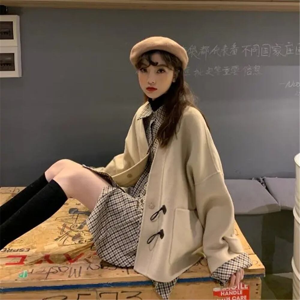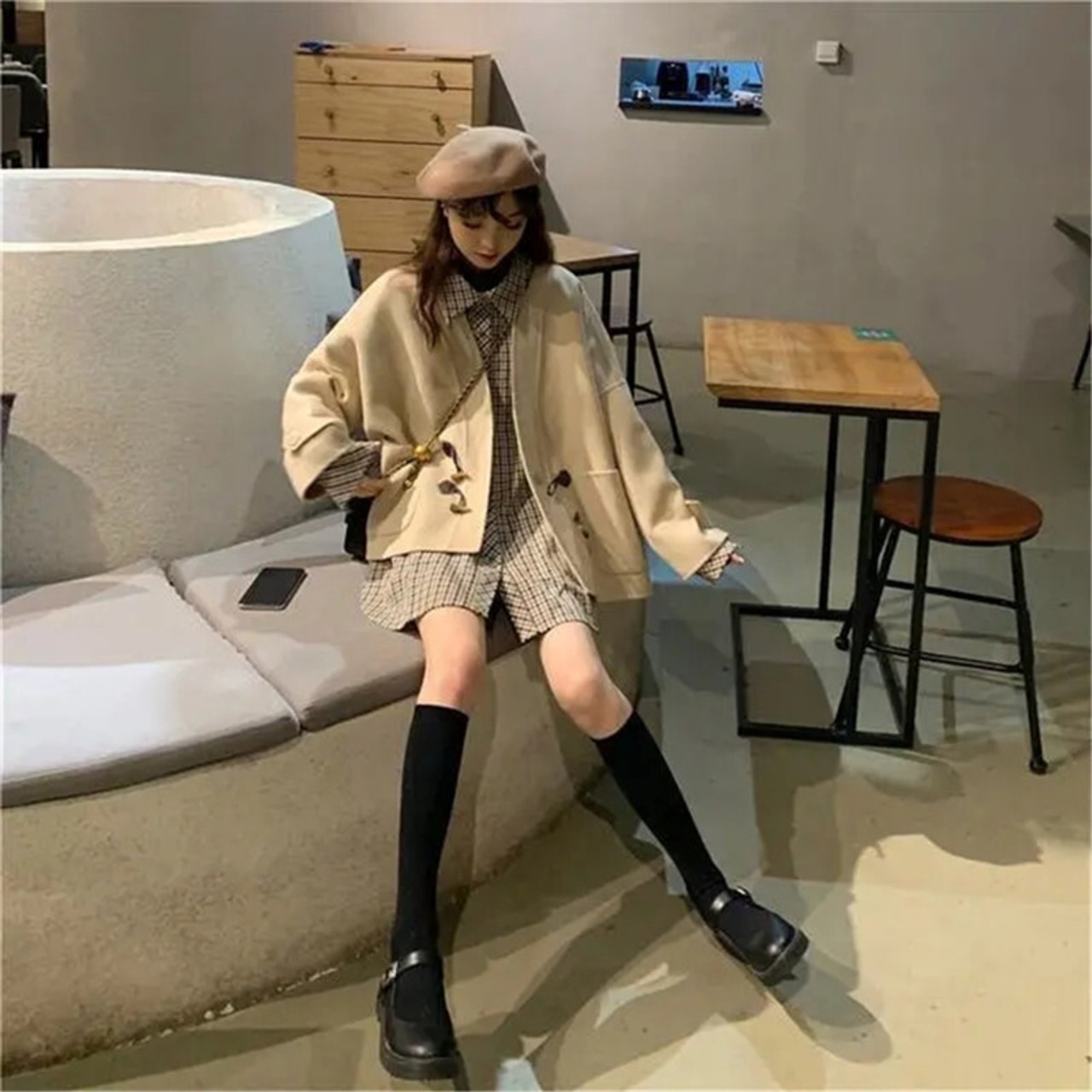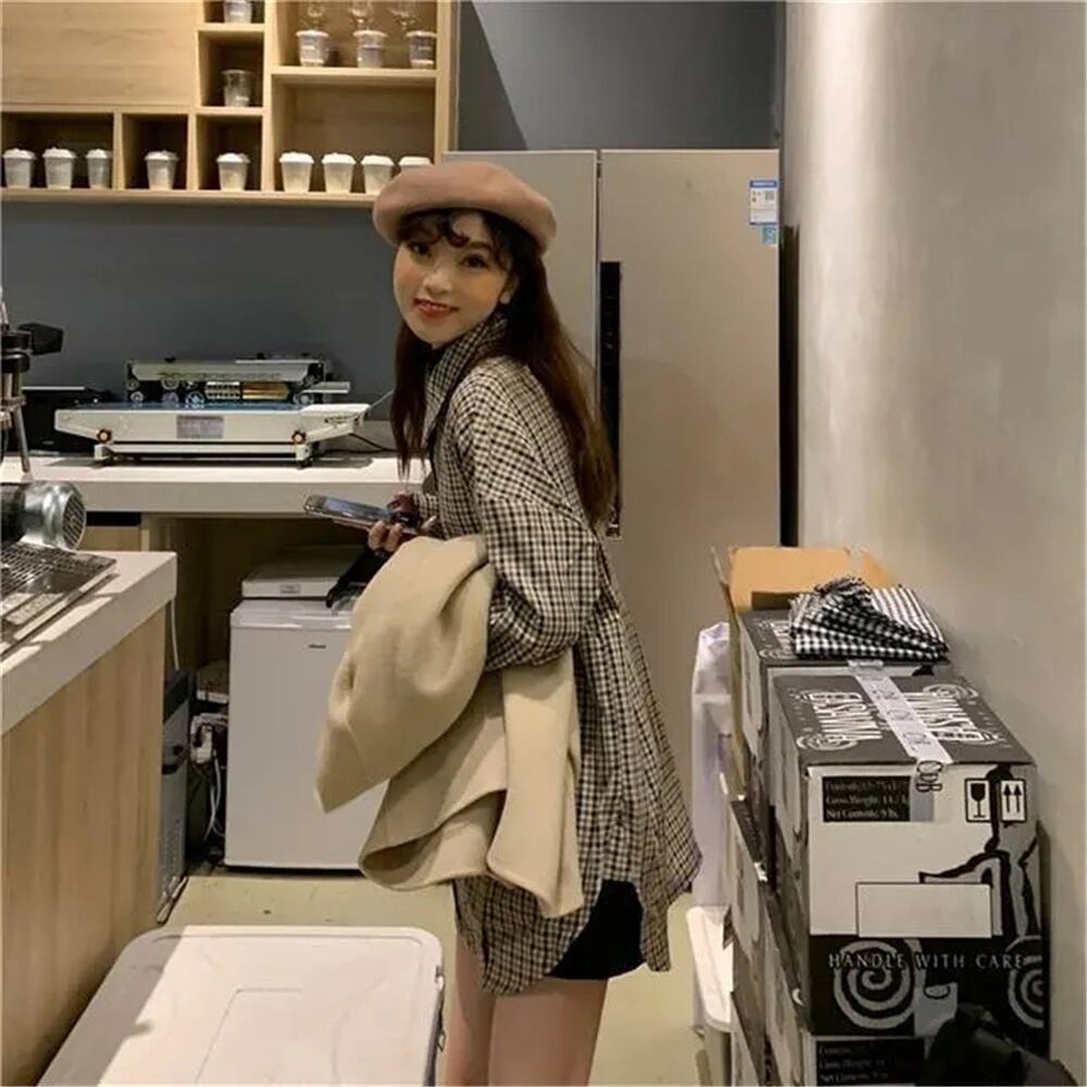スタイル緩いボタンポケットニット Jakcet チェック柄シャツ秋冬原宿女性ストリートカーディガン feminino かわいい オータム 秋物 ウィンター 冬物 bel28767492066 | aliel