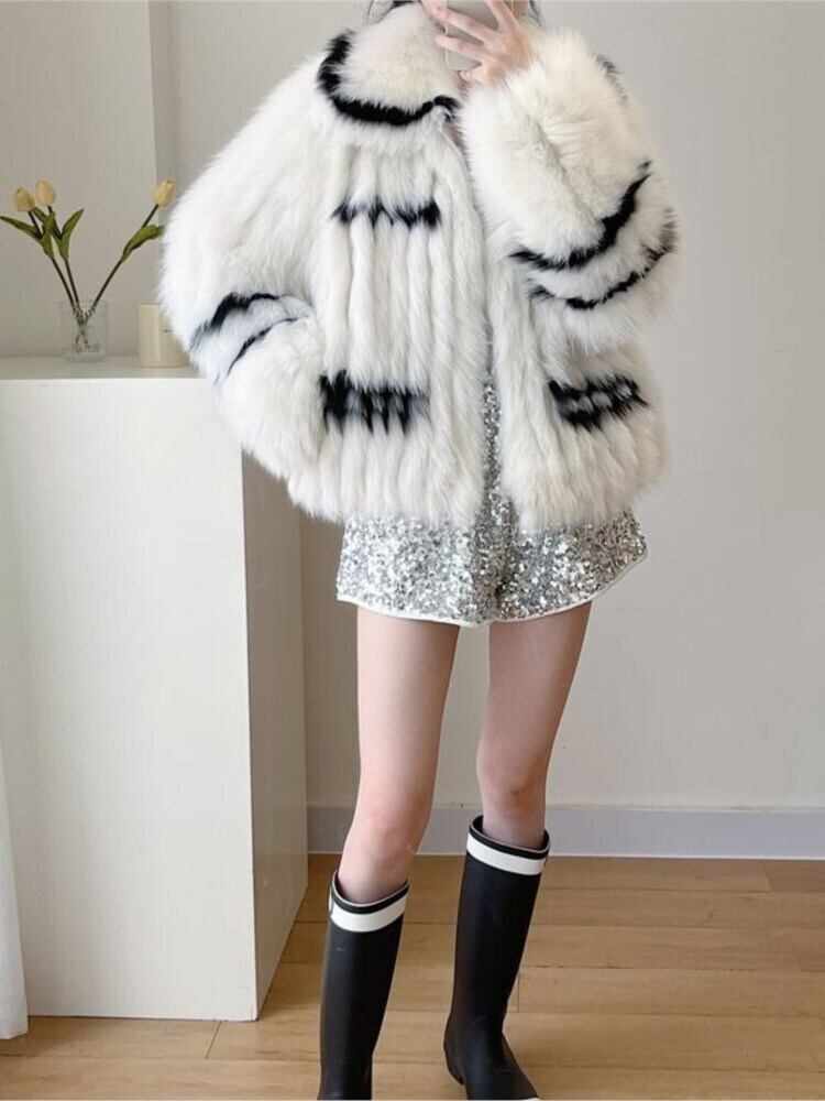 2022 リアルフォックスファーコートスウィートストリップ縫製 Toghter コート女性リアルファージャケット casacos inverno feminino jaqueta 大人ガーリー キュート カジュアル bel17793044894 | aliel