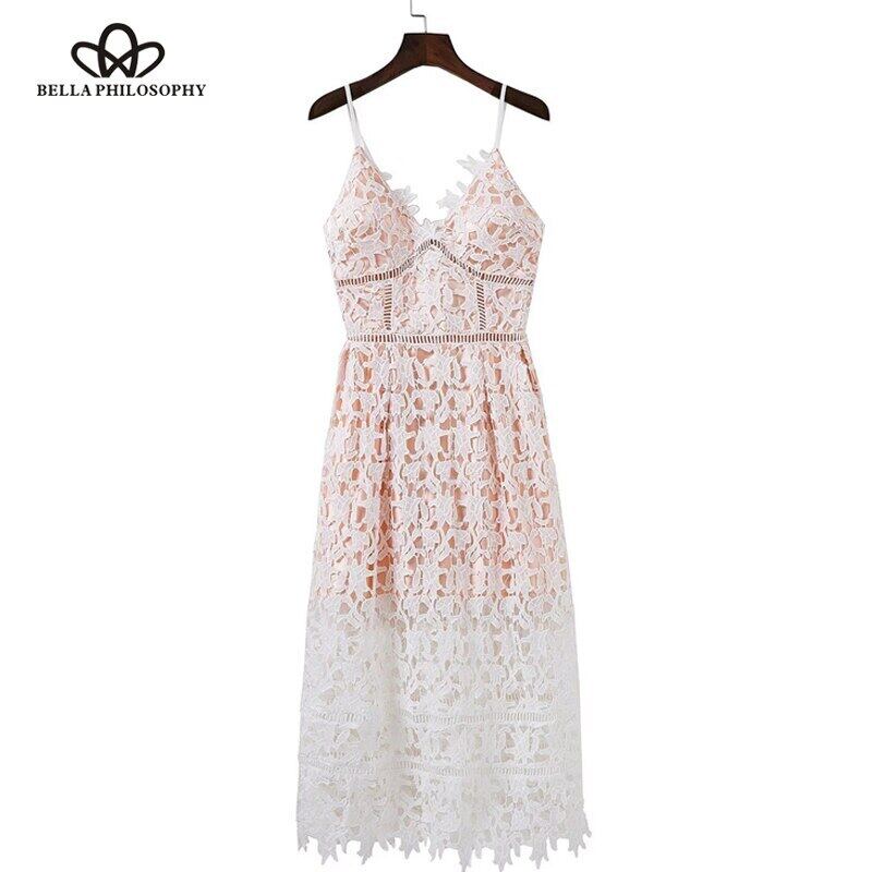 Bella Philosophy 2018 春夏 レースドレス 中空アウトキャミロングドレス ライトブラウン ホワイト パーティードレス スプリング 春物 サマー 夏物 bel19679426722 | aliel