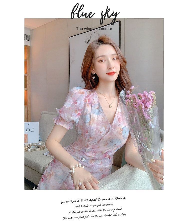 シックな半袖サンドレス女性の夏の甘い花ドレス自由奔放に生きるビーチワンピースドレス 2021 V ネック A ライン ショート ハーフスリーブ 大人ガーリー スウィート キュート カジュアル サマー 夏物 花柄 Vネック Aライン bel57827445511 | aliel