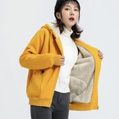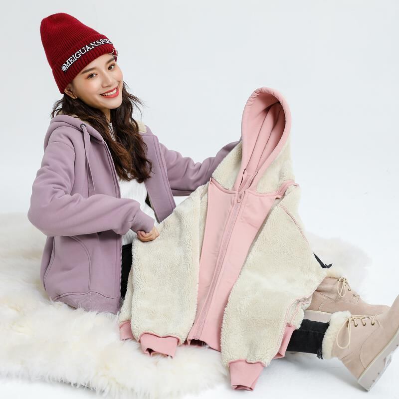 子羊模造豪華なジップアッププラスフード付き厚い女性パーカージャケット秋冬スタイルルーズスウェットシャツ Outwears オータム 秋物 ウィンター 冬物 bel43754377959 | aliel