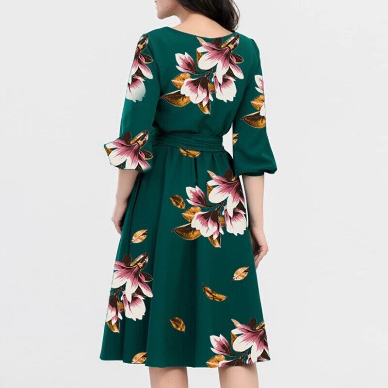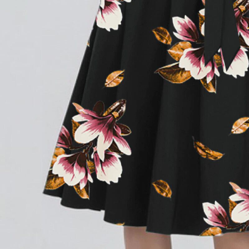 ベラ哲学女性花柄ハイウエストドレス o ネックヴィンテージレディースハーフスリーブドレス女性サッシ膝丈プラスサイズのドレス ハイウェスト 半袖 大きめサイズ Oネック ビンテージ bel78853382354 | aliel