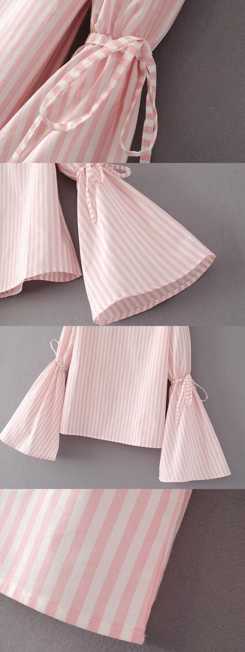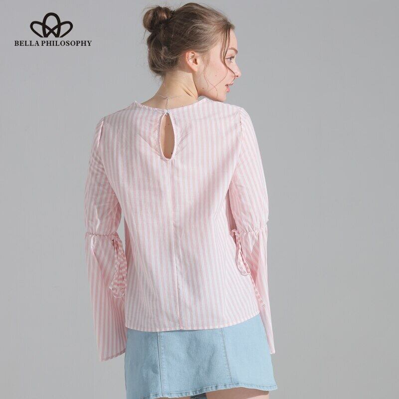 Bella Philosophy 春夏新作 レディース ブルー ピンク ストライプ フレアスリーブ ボウタイシャツブラウス リボン スプリング 春物 サマー 夏物 bel95282196780 | aliel