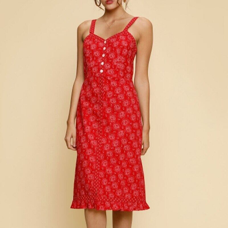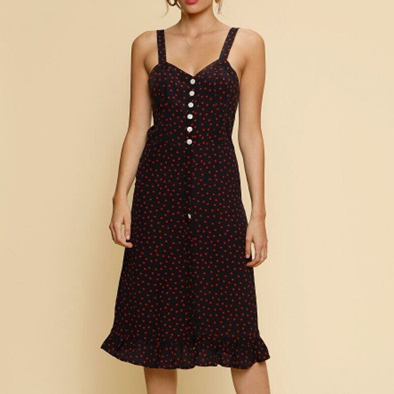 Bella Philosophy Elegent 水玉ドレス ストラップ ノースリーブ フロント ボタン シャツ ドレス スリム ファッション赤夏の女性のドレス レッド サマー 夏物 bel76971653315 | aliel