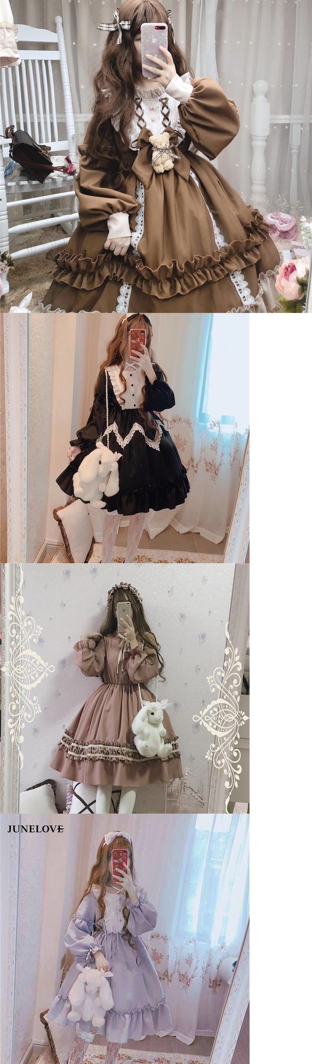 不思議の国のアリスかわいい女性ロリータ OP ドレスフラウンシングレーストリム ese 原宿長袖人形ティーンドレス妖精 Vestidos ロング 大人ガーリー スウィート キュート カジュアル bel25161097983 | aliel