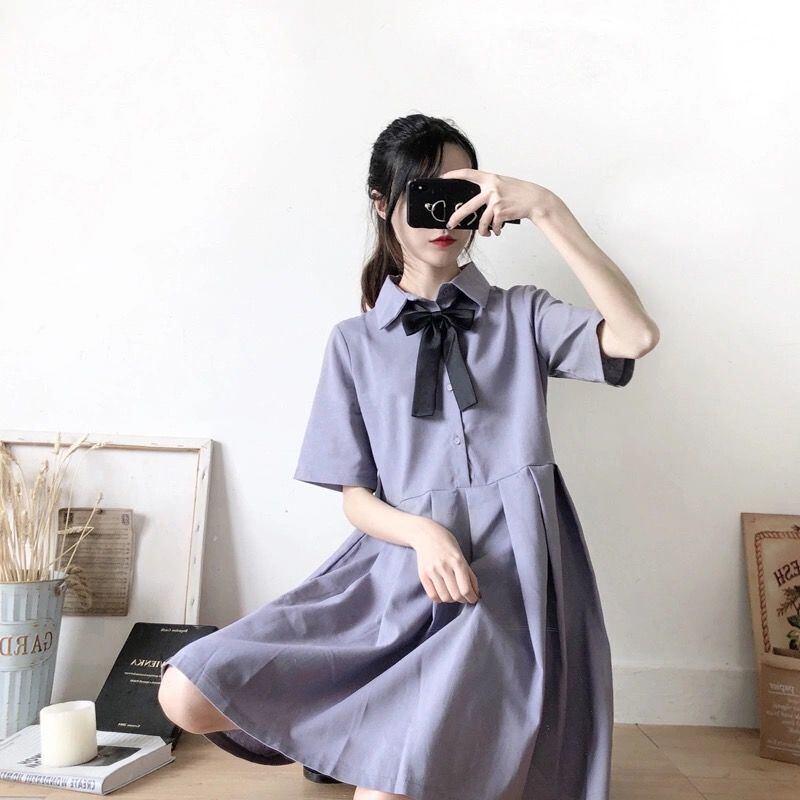A ライン甘いプリーツ ドレス ガール弓ボタン ピンク ブルー ターン ダウン襟 Janpanese 夏原宿ロリータ ドレス リボン 大人ガーリー スウィート キュート カジュアル かわいい サマー 夏物 Aライン bel31380184893 | aliel