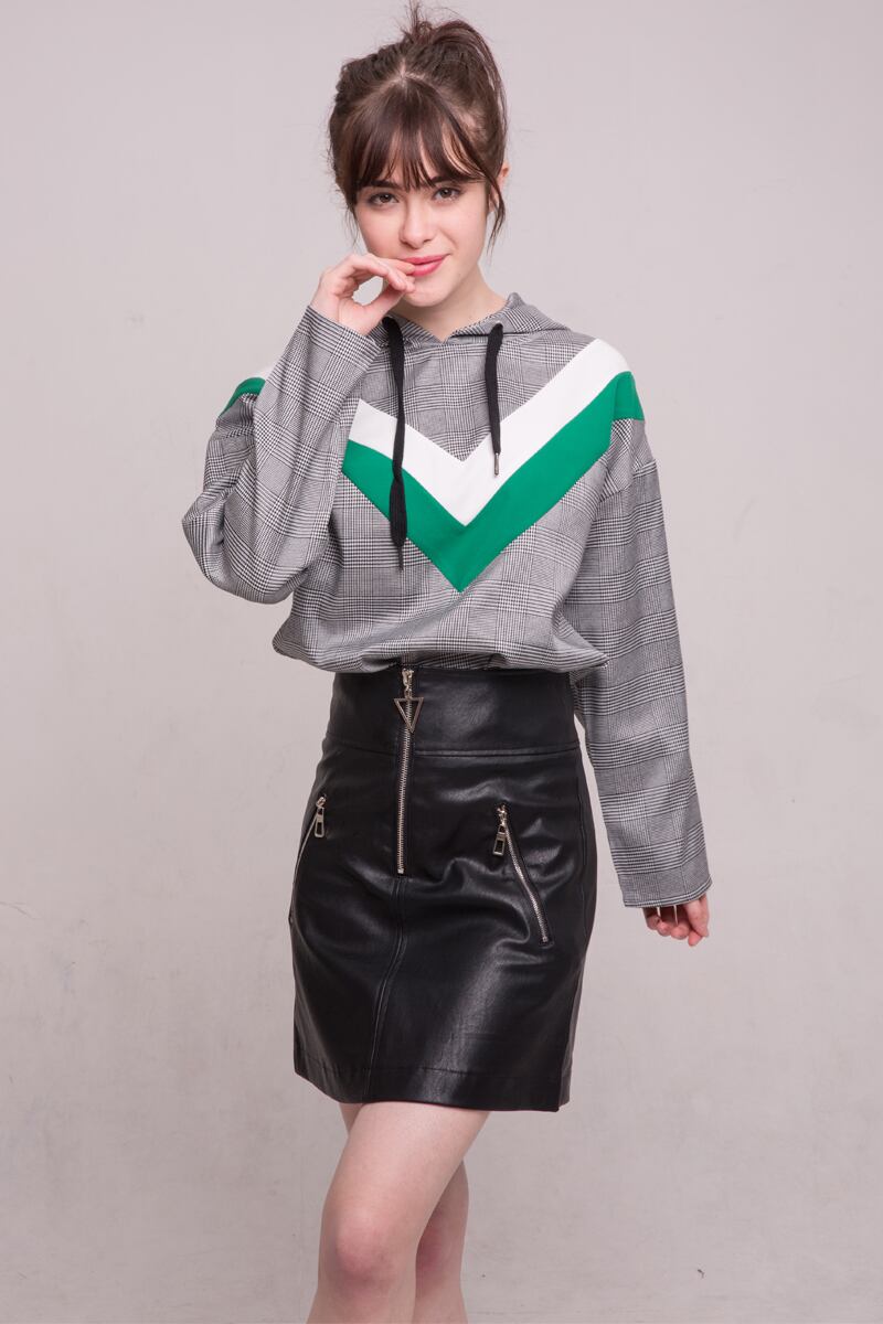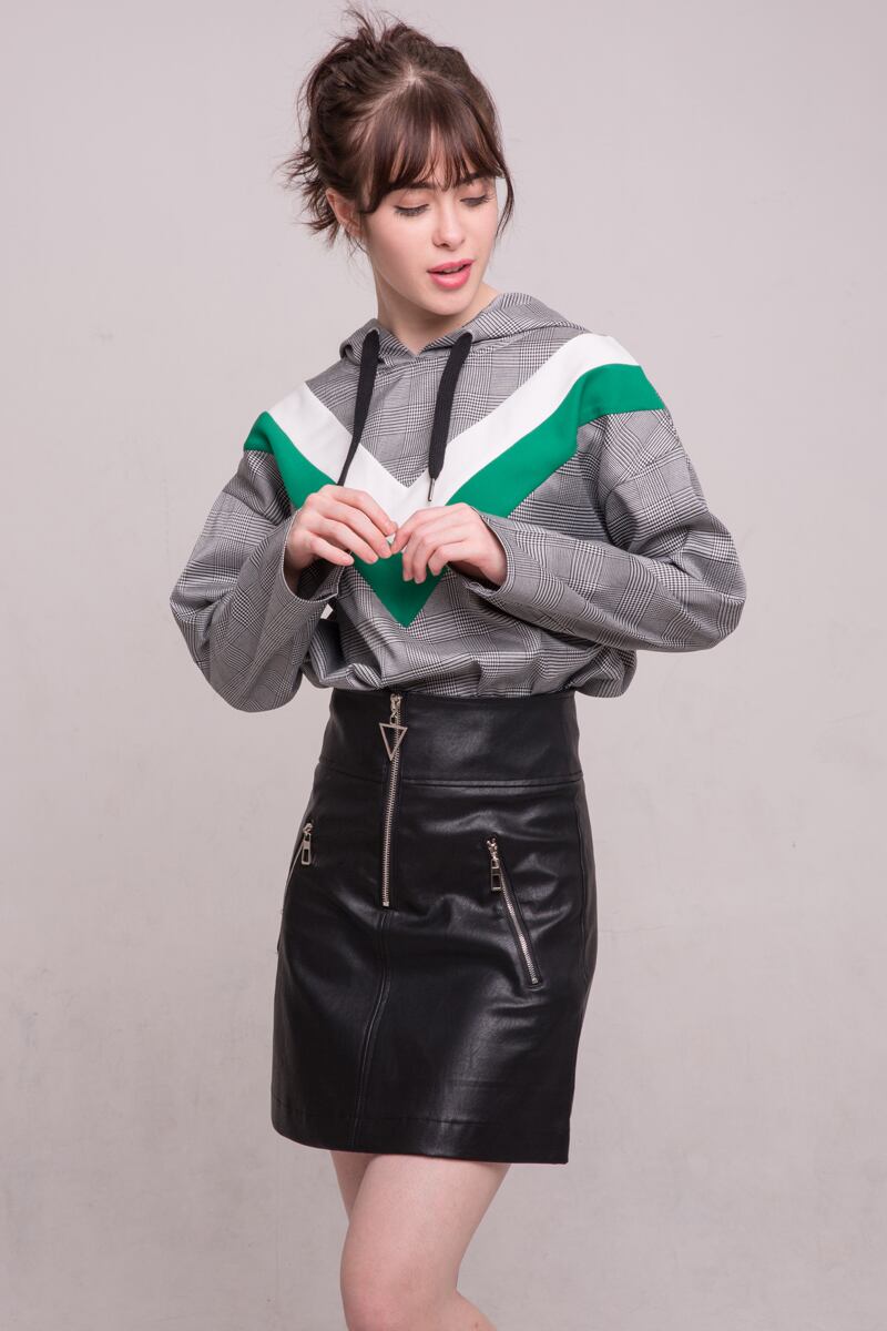 ベラ哲学春女性カジュアルロングレギュラースリーブパーカーファッションフード付き女性グレースウェットシャツ幾何学スプライスパーカー スプリング 春物 bel14823998862
