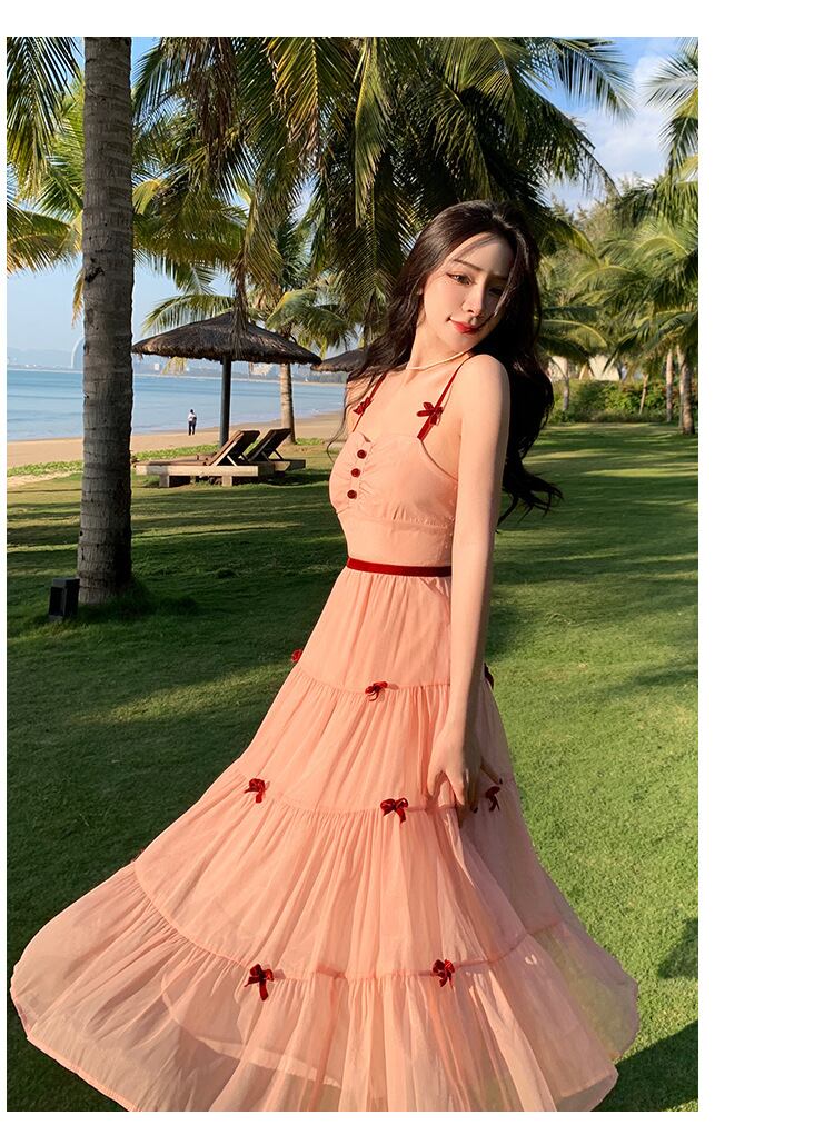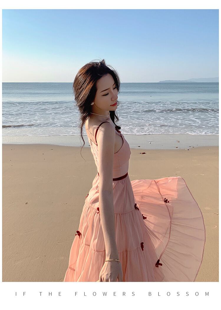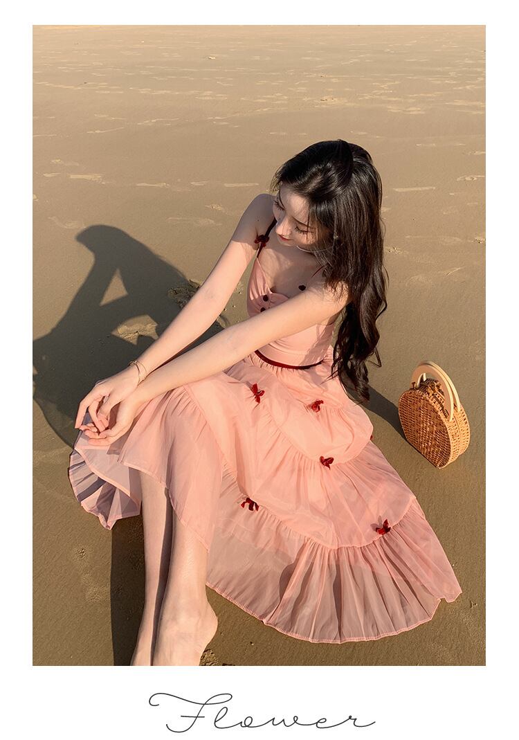 ピンクの妖精のスリングドレスの女性の夏のフレンチファーストラブガール弓甘いドレス気質パーティードレス リボン 大人ガーリー スウィート キュート カジュアル サマー 夏物 bel28569608910 | aliel
