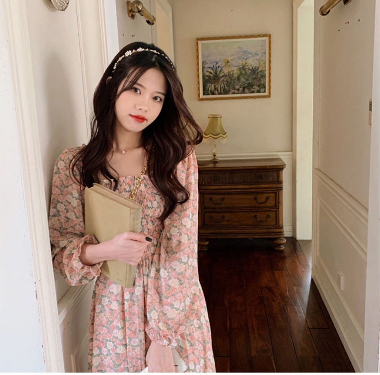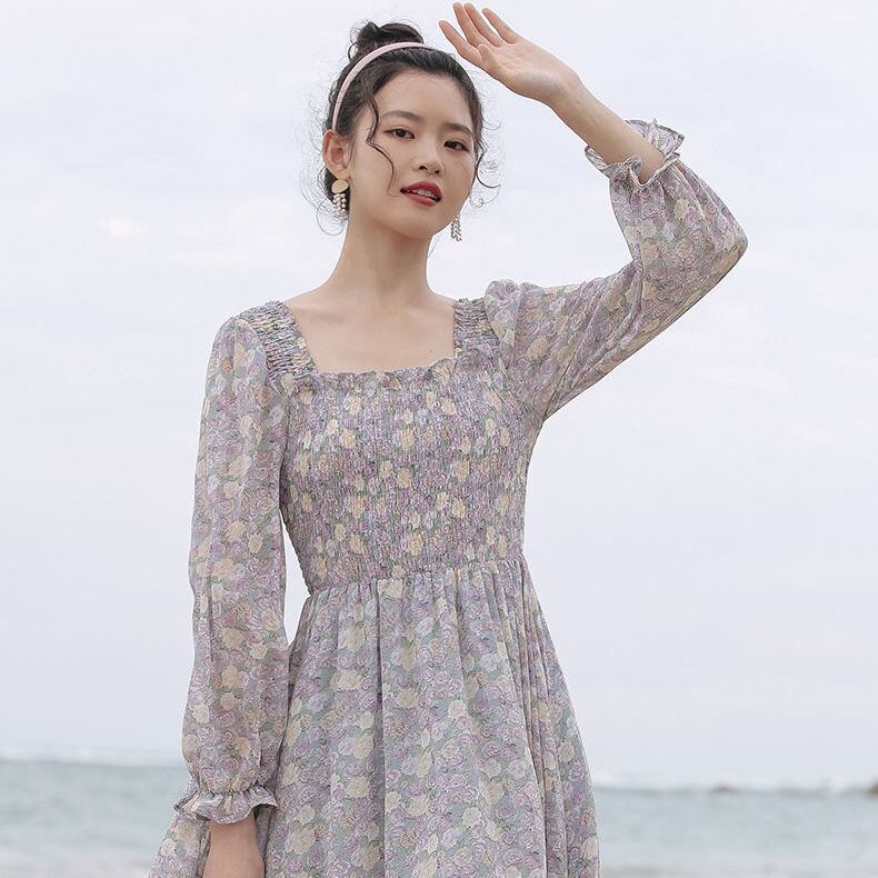 夏のエレガントな女性のプリントドレススウィートフローラルミッドレングススリムシフォンドレスビーチパーティードレス 2021 大人ガーリー キュート カジュアル サマー 夏物 花柄 bel97649138266 | aliel