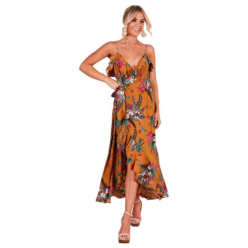ベラ哲学夏非対称花柄フリル女性ドレスカジュアルスパゲッティストラップ v ネックハイウエスト女性 vestidos ハイウェスト ラッフル サマー 夏物 Vネック bel79909632334 | aliel