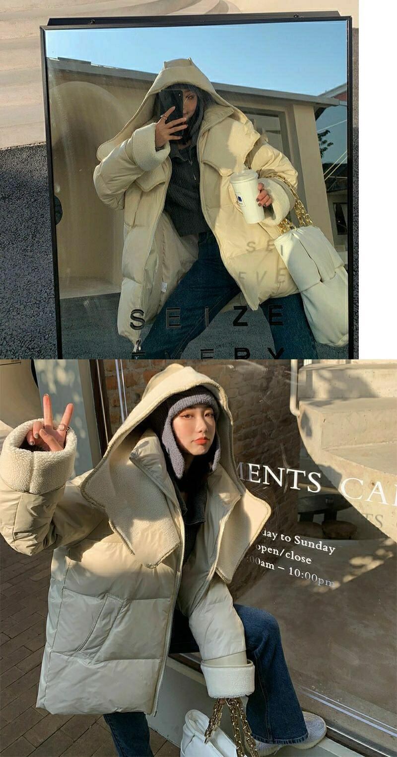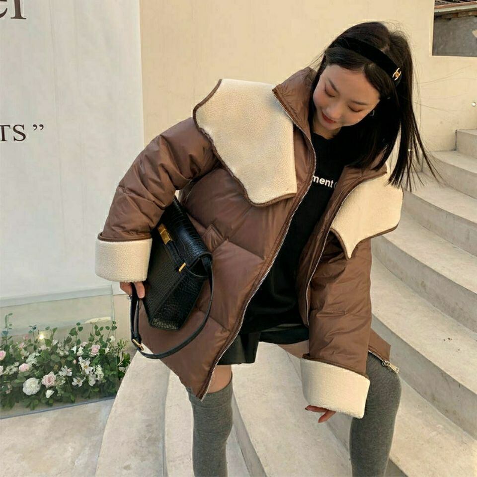 2021 冬のスプライシングソリッドフード付きフェイクレザー Pu ダウンコットンジャケットルーズラムヘアレディ生き抜く ウィンター 冬物 ファー ソリッドカラー bel78372046334 | aliel