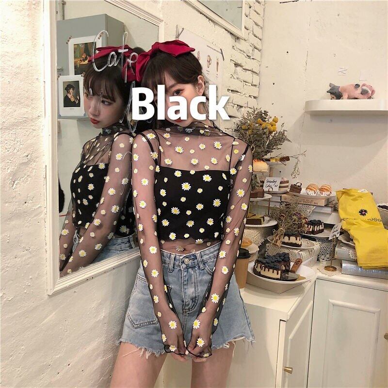 スタイルメッシュトップデイジーアンダーシャツ原宿美的かわいいレースフラワー Tシャツ長袖メッシュトップス ロング 大人ガーリー スウィート キュート カジュアル フラワーデザイン bel39421910829 | aliel