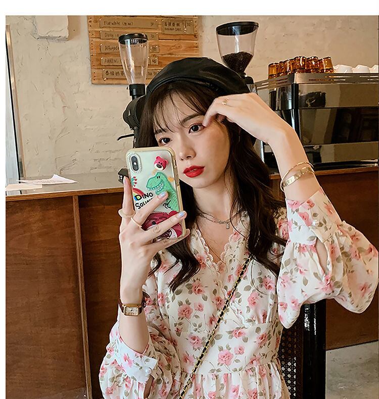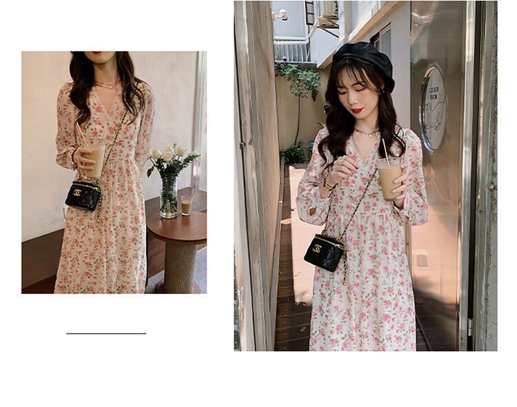 V ネックフラワープリント女性シフォンドレス弾性ウエスト不規則な裾女性ドレスフリル Vestidos 2022 ラッフル エラスティック 伸縮 Vネック フラワーデザイン bel64073146655 | aliel