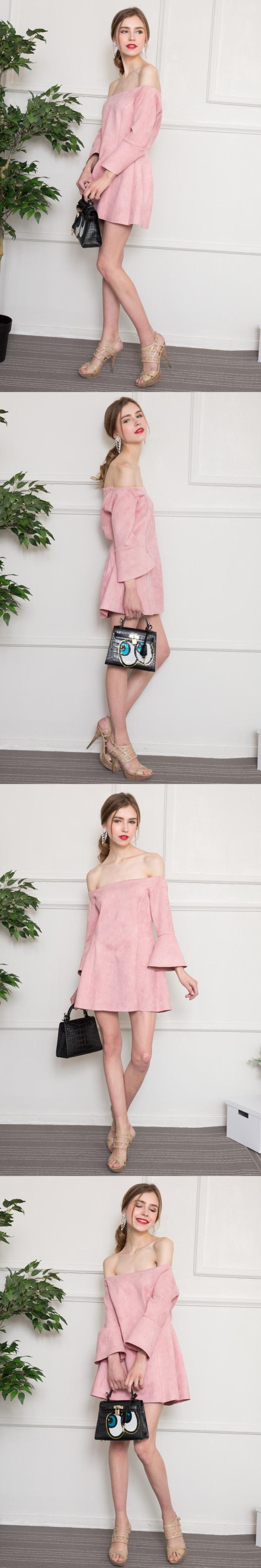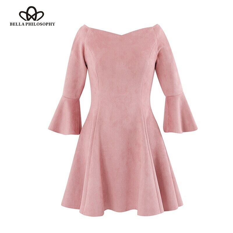 ベラ哲学秋冬スラッシュネックオフショルダー女性ドレスフリルスリーブ女性スケータードレスピンクソリッドレディースvestidos ラッフル オータム 秋物 ウィンター 冬物 ソリッドカラー bel13757509557 | aliel