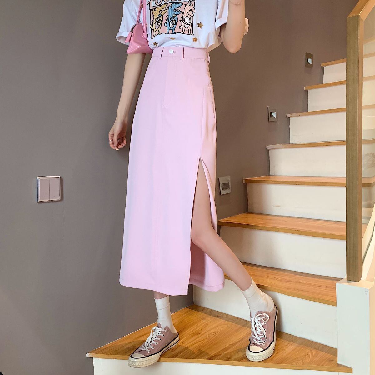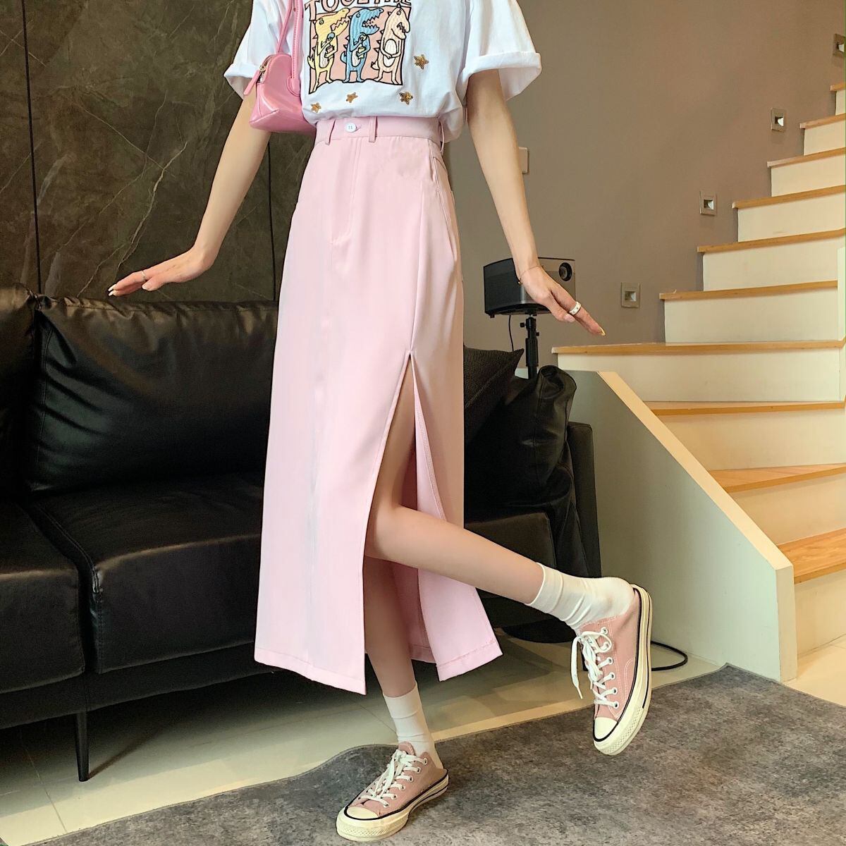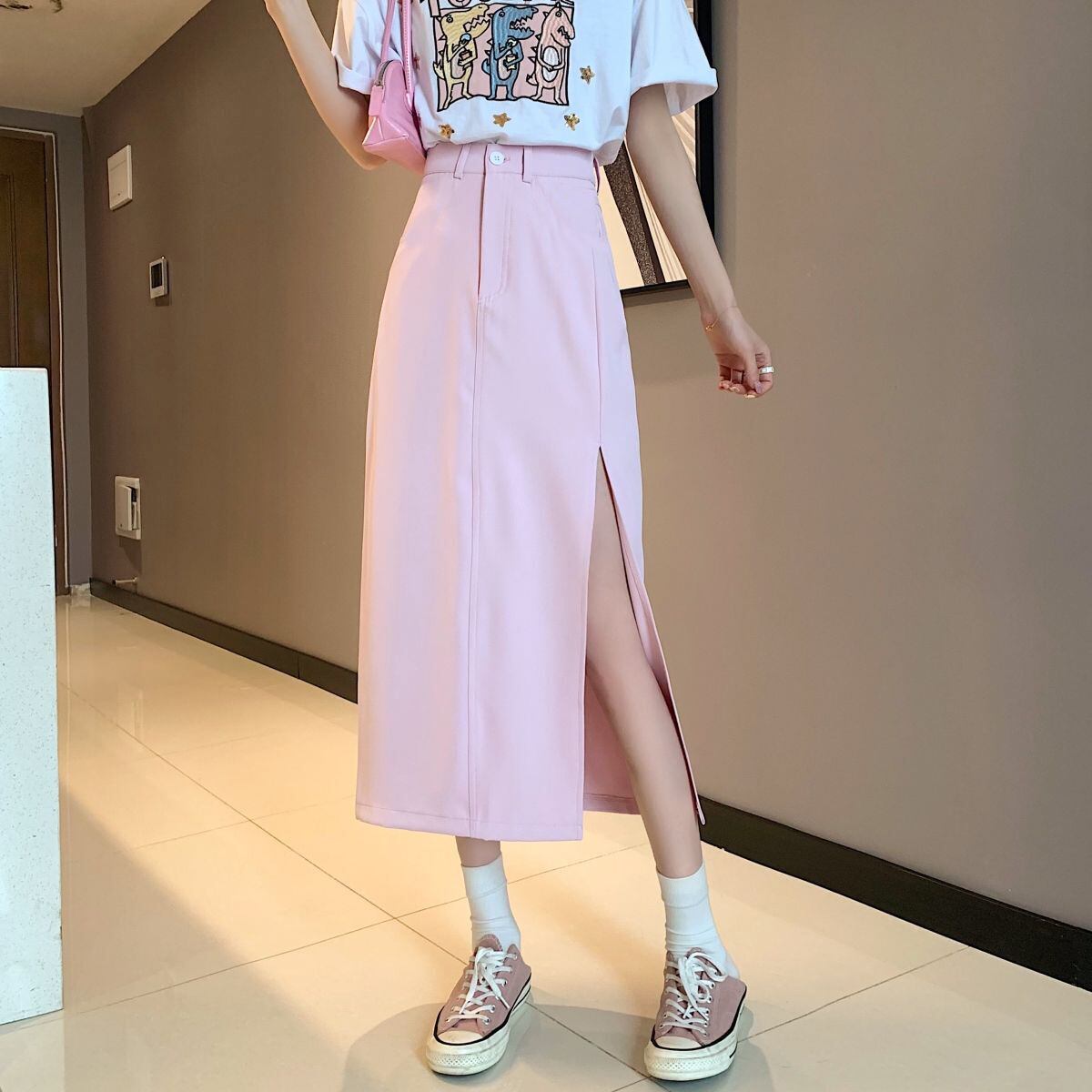 ソリッドスプリットスカート女性 A ラインウエストミディスカート夏のビーチパーティー甘いスカート 2021 大人ガーリー スウィート キュート カジュアル サマー 夏物 Aライン ソリッドカラー bel6604242262 | aliel