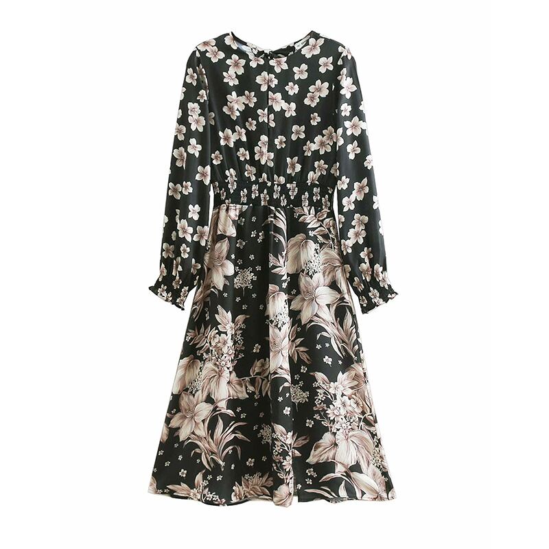 Bella Philosophy 春長袖セクシーなミディドレスプリント花柄スプリットドレスレトロレディ弾性ウエストドレス 2019 ロング エラスティック 伸縮 スプリング 春物 bel41121104414 | aliel