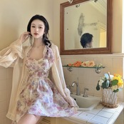 フローラルサマードレス女性 V ネックビーチ甘いセクシーなストラップミニドレス背中の開いたパーティードレス 2021 大人ガーリー スウィート キュート カジュアル 夏物 花柄 Vネック bel96378664673 | aliel