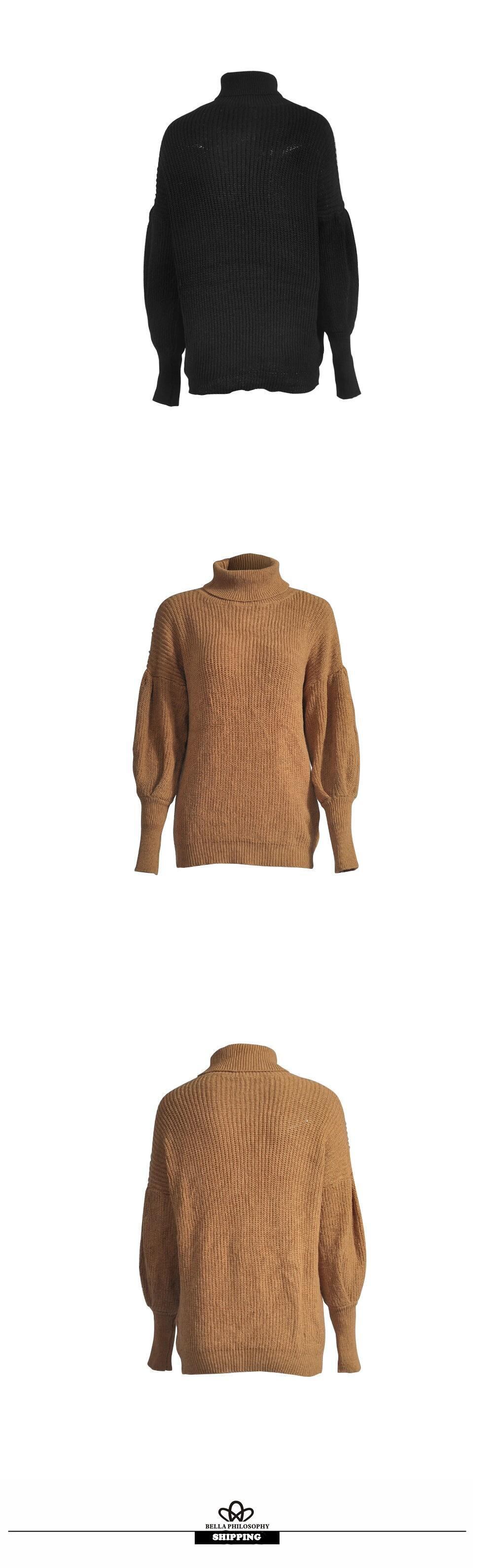 Bella Philosophy Autunm Winter タートルネック無地女性セーターランタンスリーブポロオーバーニットルーズジャンパー ウィンター 冬物 ソリッドカラー bel38048544265