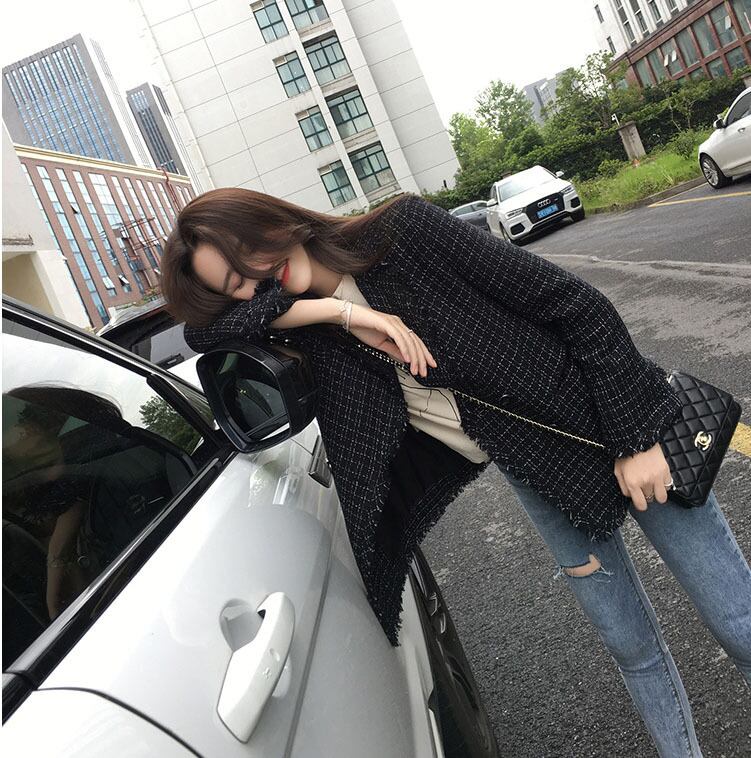 Bella Philosophy 2019 秋の女性チェック柄ツイードブレザーコート女性ダブルブレスト Tel ジャケットオフィスアウター オータム 秋物 会社 学校 通勤や通学にも bel49136565771 | aliel