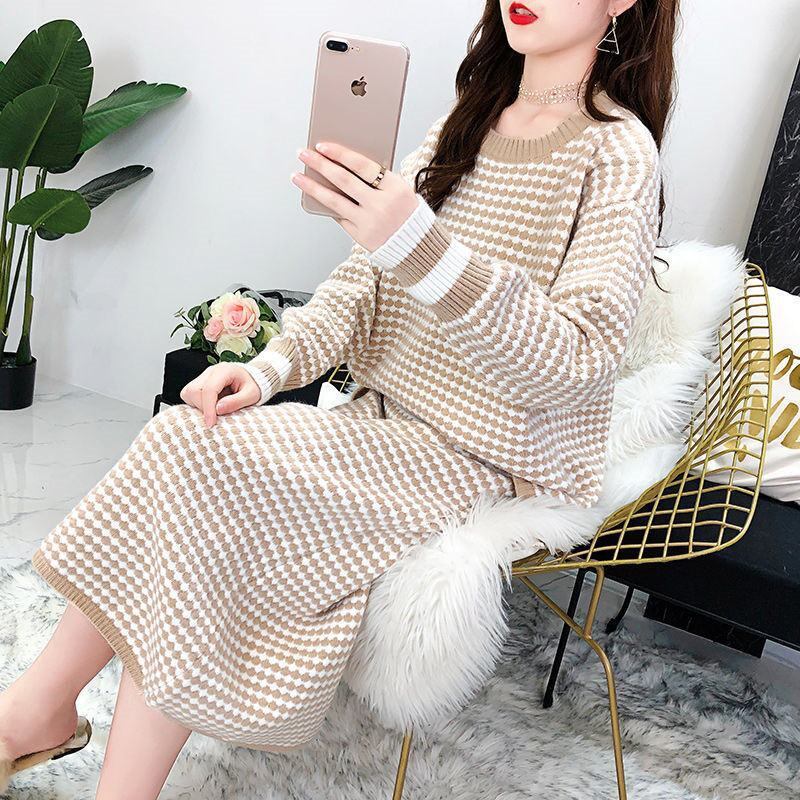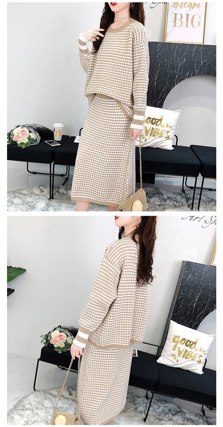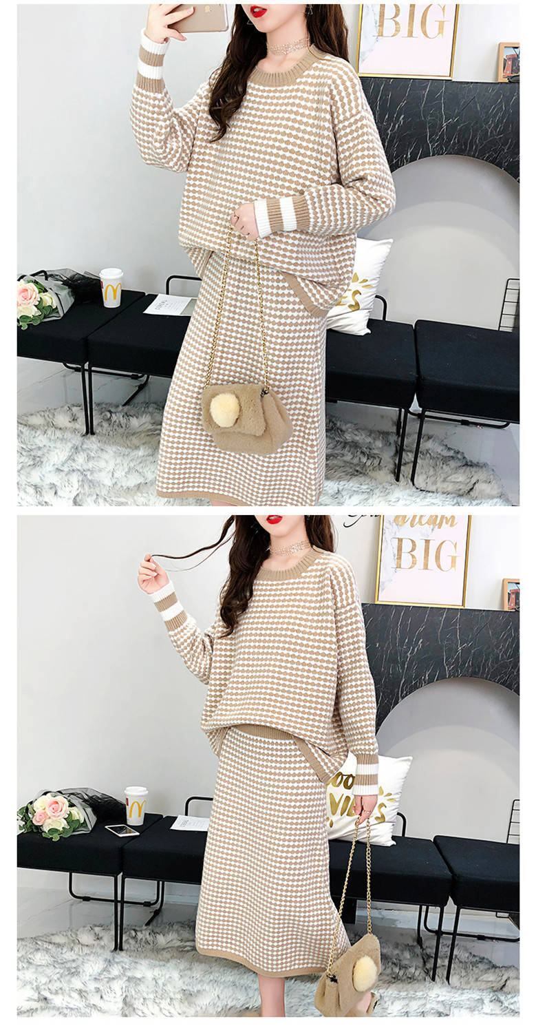 Bella Philosophy 2019 秋の女性チェック柄ニットプルオーバーオフィスレディツーピースセットセータージャンパーセーター オータム 秋物 会社 学校 通勤や通学にも bel43937108827 | aliel