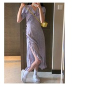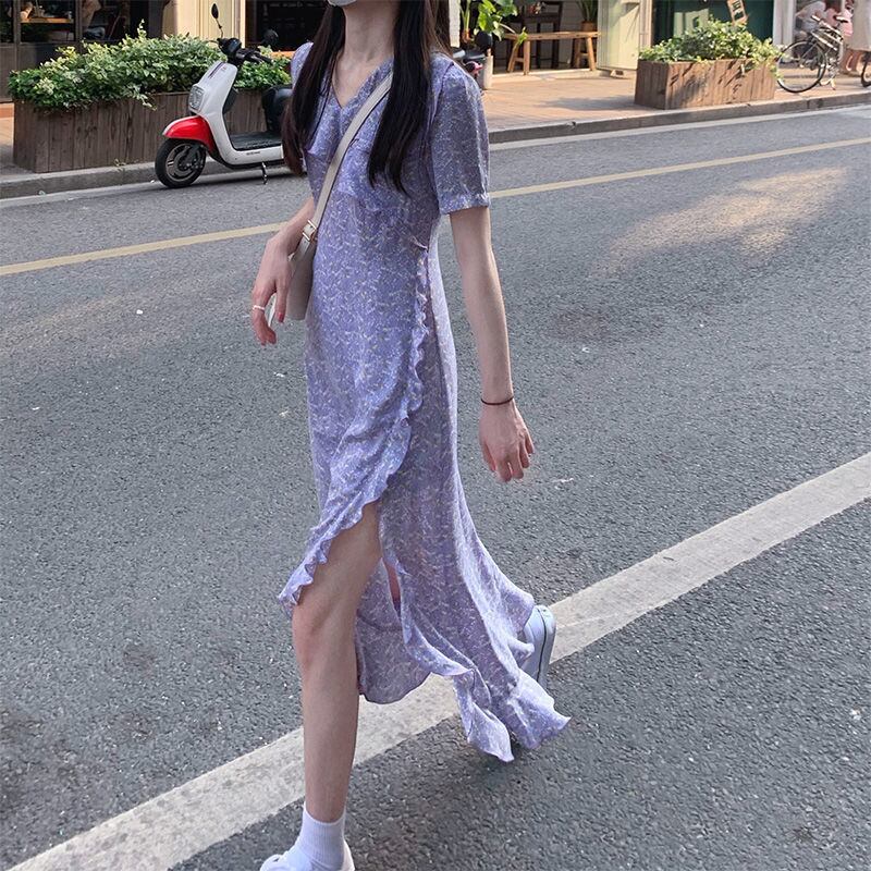 BP 女性の夏の半袖ロングドレスプリントフローラルフリル自由奔放に生きるドレスホリデーラドゥシフォン Vestido ショート ハーフスリーブ ラッフル サマー 夏物 花柄 bel69335800884 | aliel