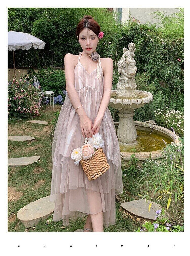 夏サスペンダーメッシュビーチスタイルドレススパゲッティストラップスラッシュネックソリッドローブセクシーな背中の開いたドレスの女性 サマー 夏物 ソリッドカラー bel50565093057 | aliel