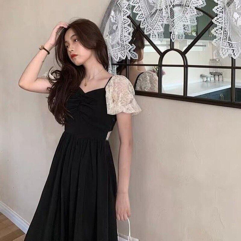 夏のドレスの女性 V ネック半袖黒のドレスパーティーオフィスレディシックなレース Vestidos ショート ブラック ハーフスリーブ サマー 夏物 Vネック 会社 学校 通勤や通学にも bel82755555606 | aliel